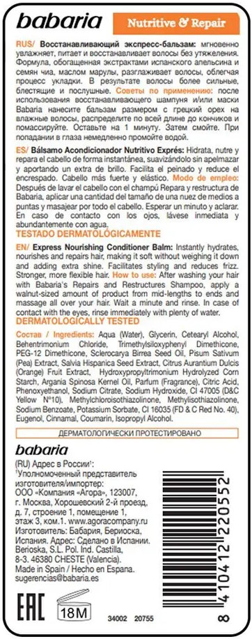 Babaria Экспресс-бальзам для волос восстанавливающий