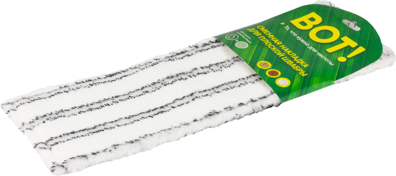 Мнение клиентов: Размер подходит большинству швабр, ткань выглядит качественно, а материал не разлохачится при использовании. Множество пользователей отмечают прочность ткани и надёжность подкладки. В целом покупатели довольны и рекомендуют сменную накладку.