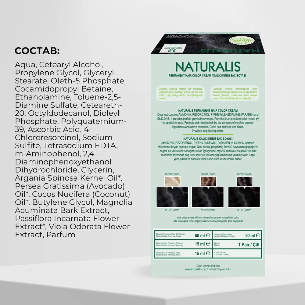 Neva Крем-краска для волос «Naturalis Vegan», оттенок 3.0 Насыщенный тёмно-коричневый