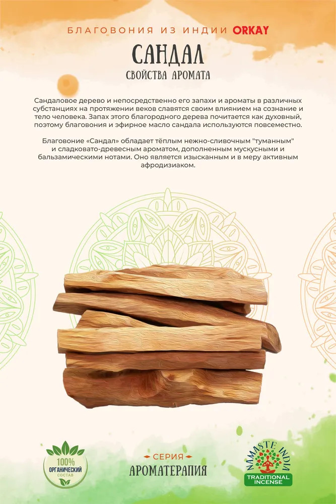Очень приятный запах,долго держится,незажённые палочки можно использовать как ароматизатор в шкафу с одеждой