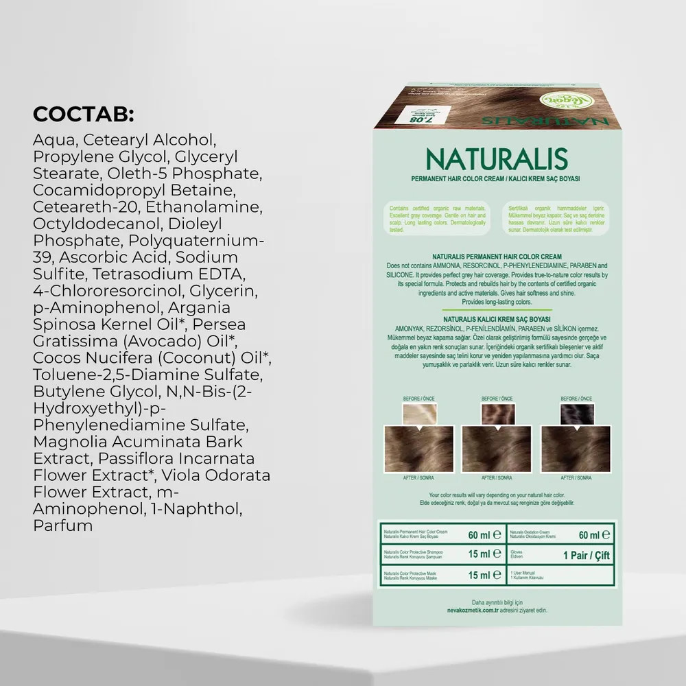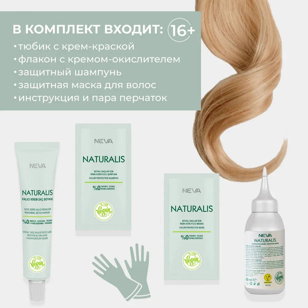 Neva Крем-краска для волос «Naturalis Vegan», оттенок 7.08 Песочно-желтый