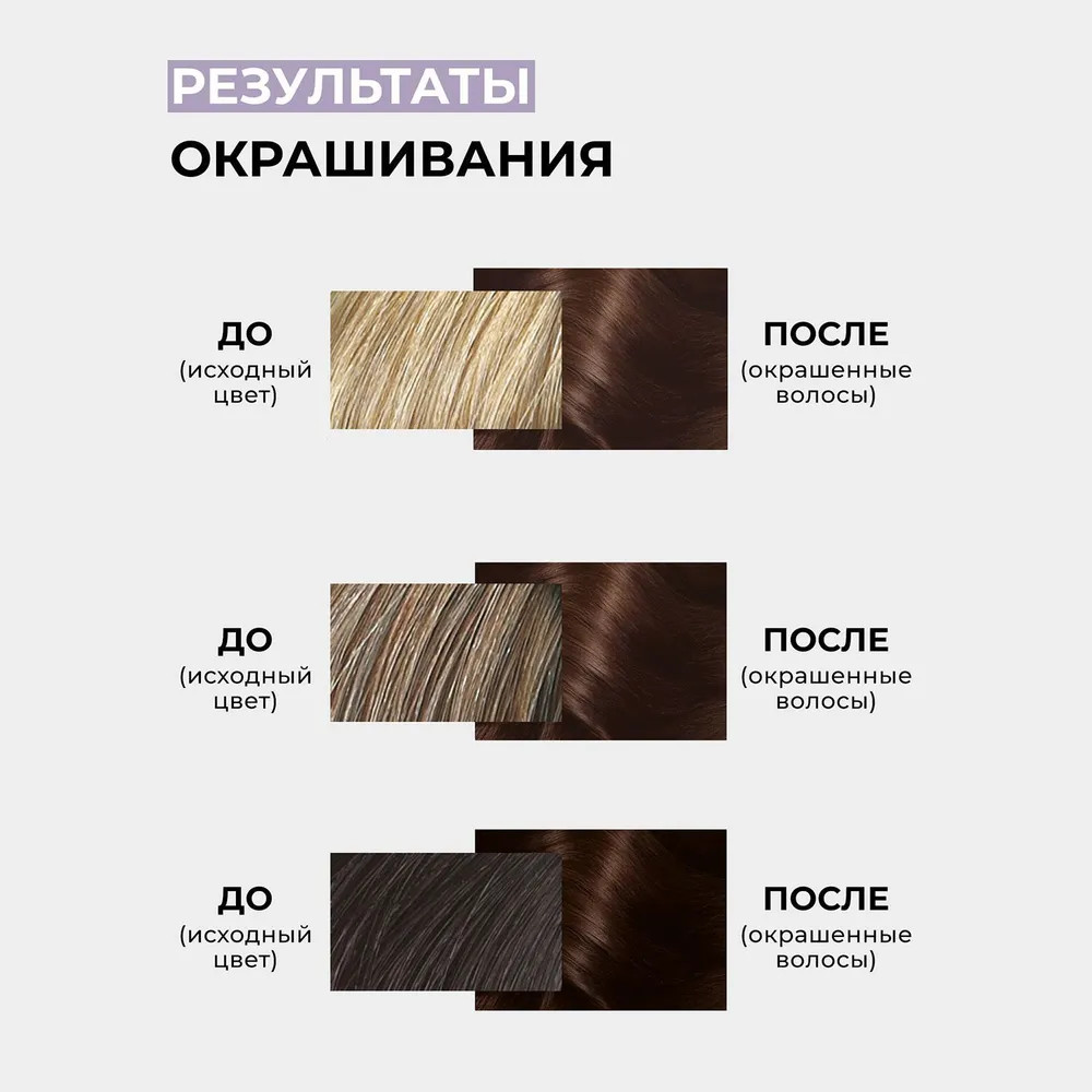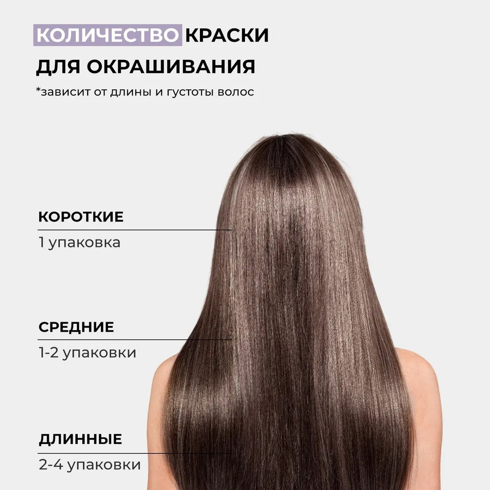 Комплектация упаковки: краска, окислитель, средство для защиты цвета волос, перчатки. Перед окрашиванием внимательно изучите инструкцию и строго следуйте ее указаниям.