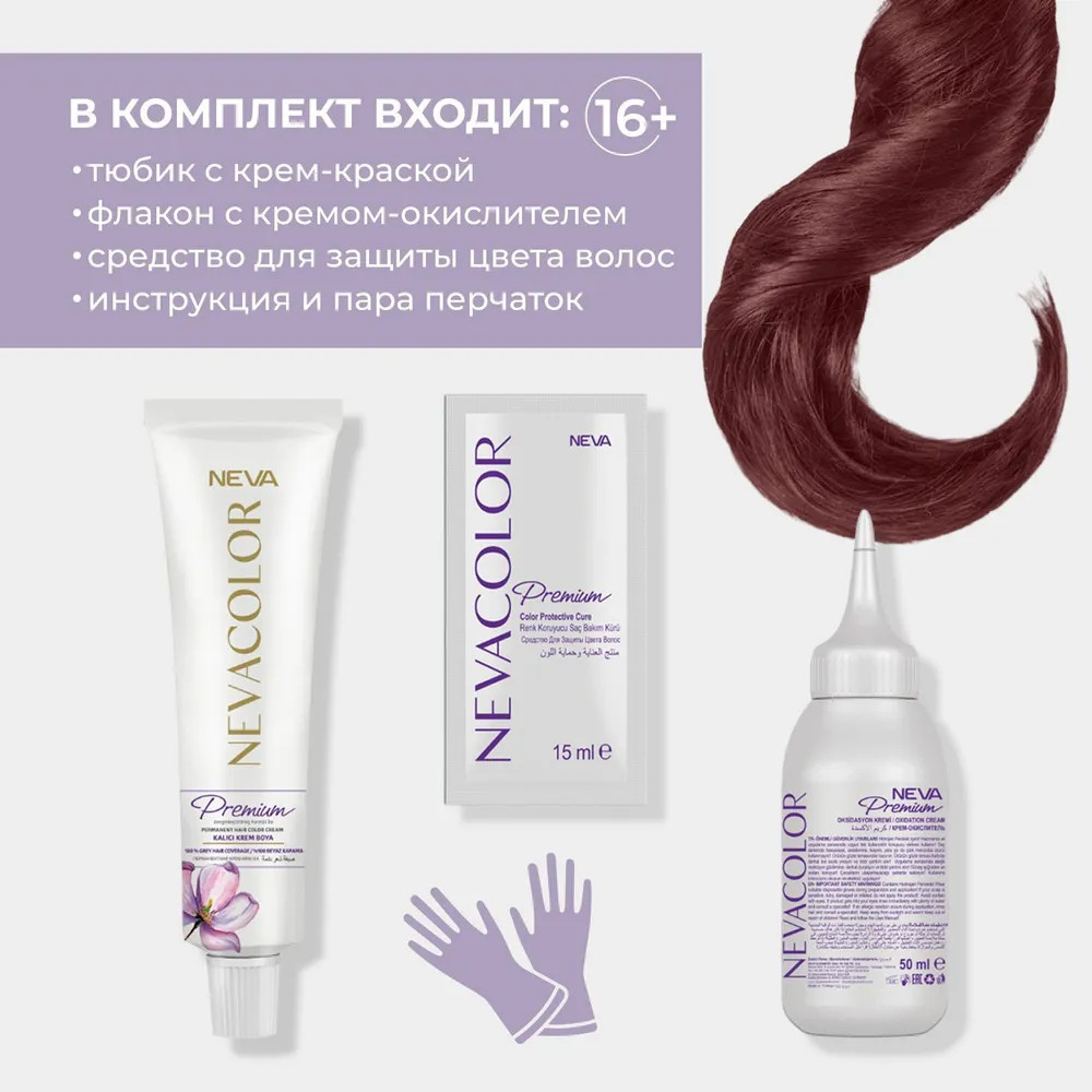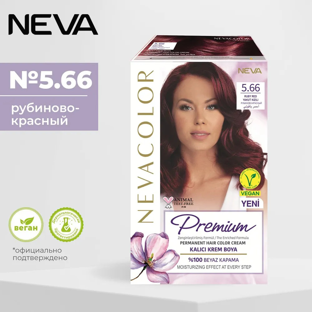 Neva Крем-краска для волос «Prеmium», оттенок 5.66 ruby red/рубиново-красный