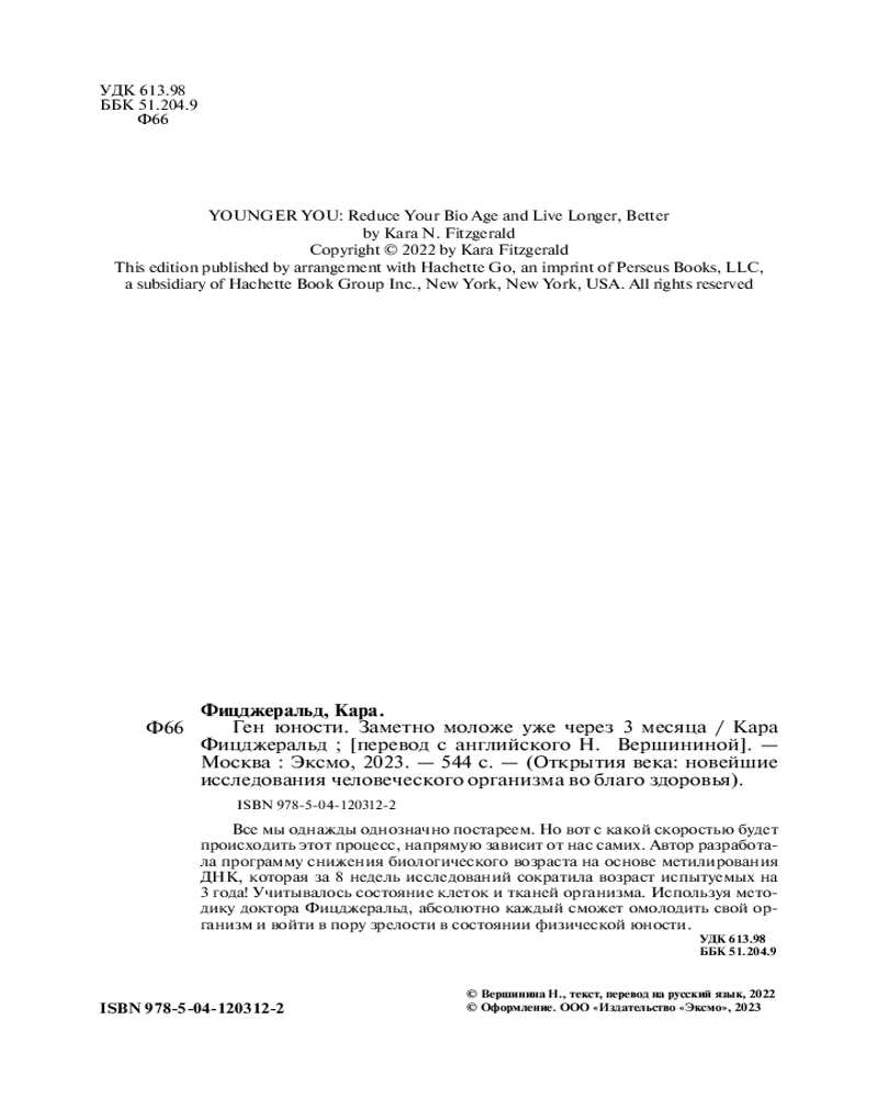 💳 Оплатить за товар можно при получении 🇰🇿 Есть бесплатная доставка по Казахстану от 1 дня 🎁 Копите бонусы с каждой покупки Серия: Открытия века: новейшие исследования человеческого организма во благо здоровья Старение неизбежно, и ваш хронологический возраст может двигаться только в одном направлении. Но еще есть понятие биологического возраста, который ученые могут измерить, оценив, как экспрессируются гены. Новое захватывающее исследование Кары Фицджеральд показывает, каким именно образом можно заставить тело в прямом смысле омолаживаться. Автор подробно описывает процесс метилирования ДНК и объясняет, как различные факторы эпигенетики способны воздействовать на него, заставляя нас стареть быстрее или медленнее. |