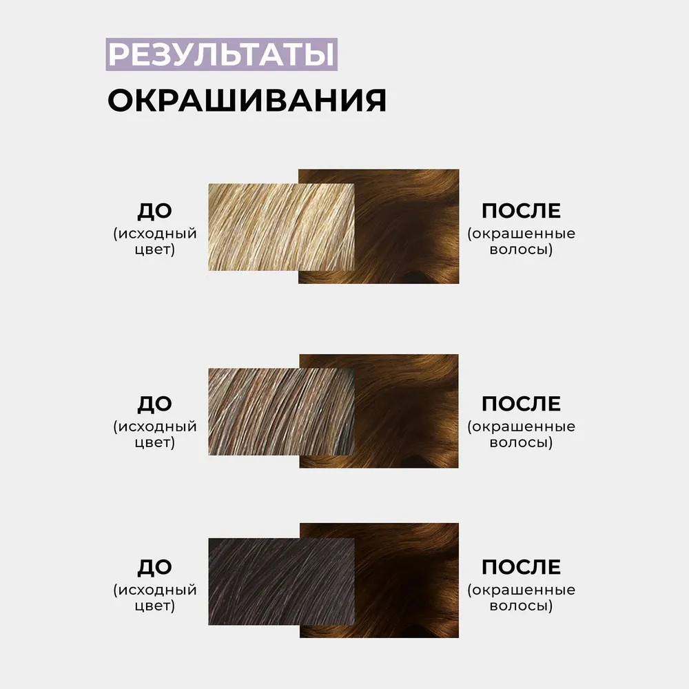 Комплектация упаковки: краска, окислитель, средство для защиты цвета волос, перчатки. Перед окрашиванием внимательно изучите инструкцию и строго следуйте ее указаниям.