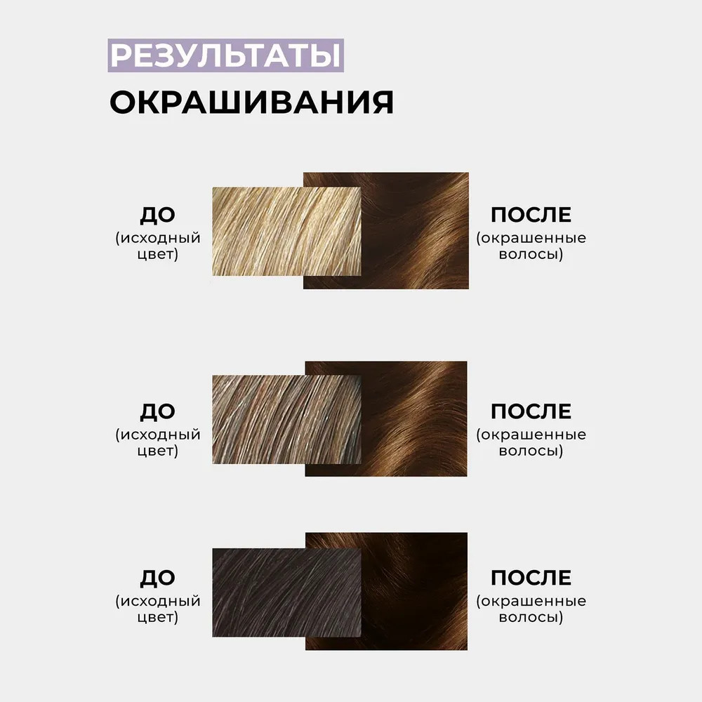 Комплектация упаковки: краска, окислитель, средство для защиты цвета волос, перчатки. Перед окрашиванием внимательно изучите инструкцию и строго следуйте ее указаниям.