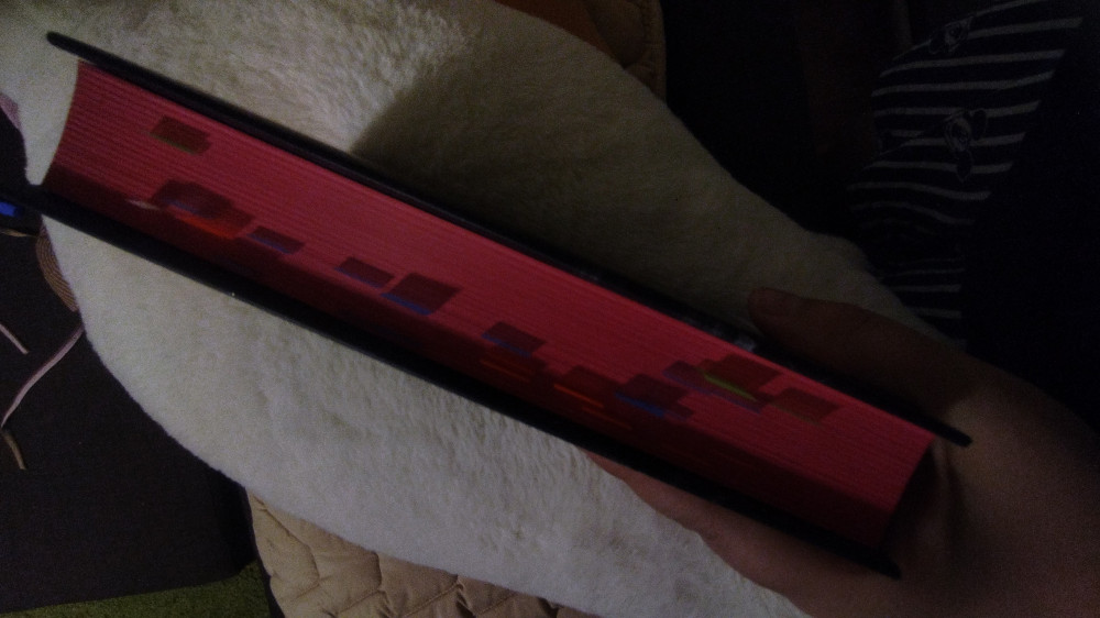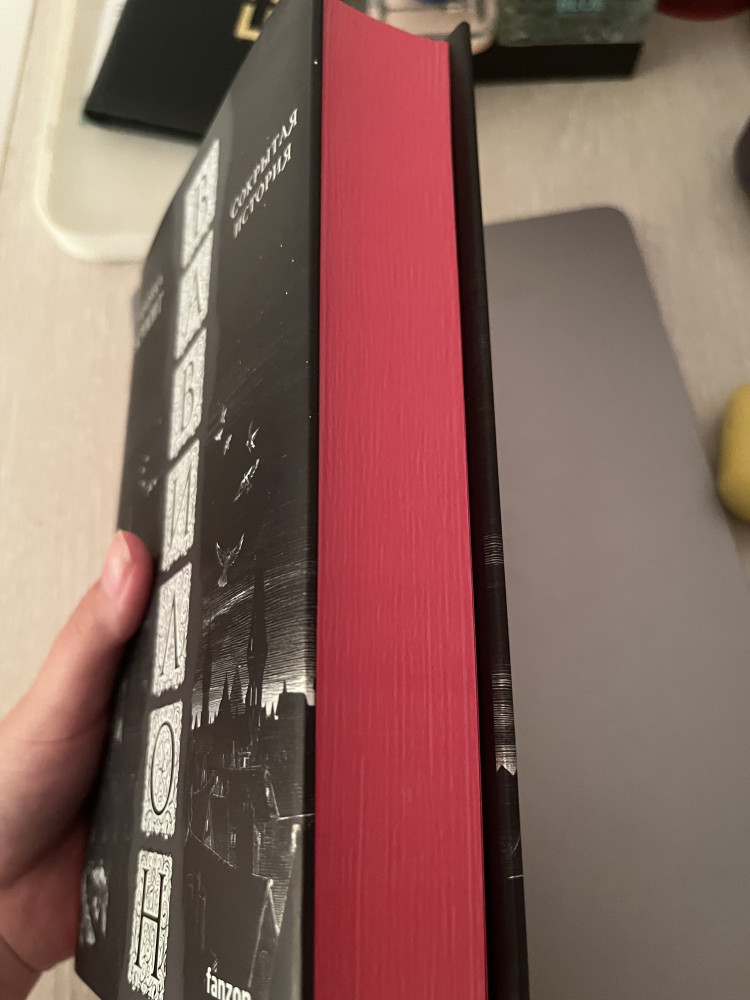 Книга потрясающе выполнена. Цветной срез - красного цвета, страницы молочные, не сильно плотные но и не тонкие. Сама книга не тяжёлая.