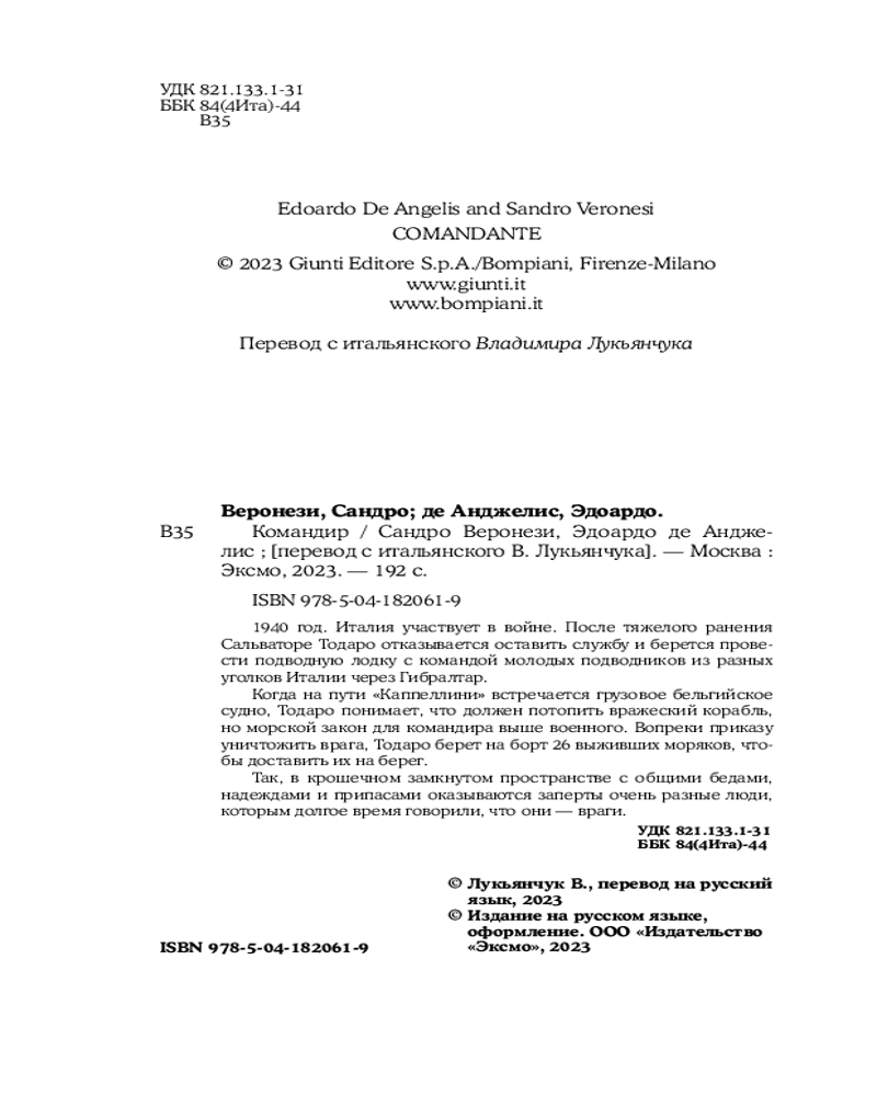 💳 Оплатить за товар можно при получении 🇰🇿 Есть бесплатная доставка по Казахстану от 1 дня 🎁 Копите бонусы с каждой покупки Серия: Переведено. На реальных событиях 1940 год. Италия участвует в войне. После тяжелого ранения Сальваторе Тодаро отказывается оставить службу и берется провести подводную лодку с командой молодых подводников из разных уголков Италии через Гибралтар. Когда на пути «Каппеллини» встречается грузовое бельгийское судно, Тодаро понимает, что должен потопить вражеский корабль, но морской закон для командира выше военного. Вопреки приказу уничтожить врага Тодаро берет на борт 26 выживших моряков, чтобы доставить их на берег. |