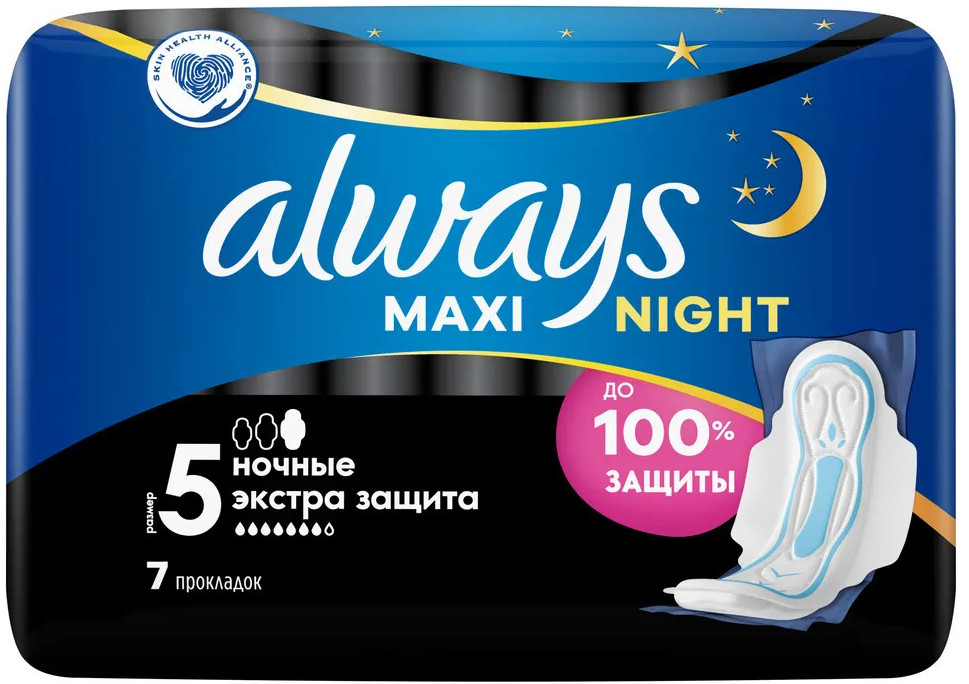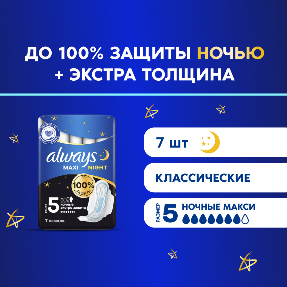 Always Прокладки гигиенические женские толстые «Ночные Экстра Защита», размер 5, 7 шт.