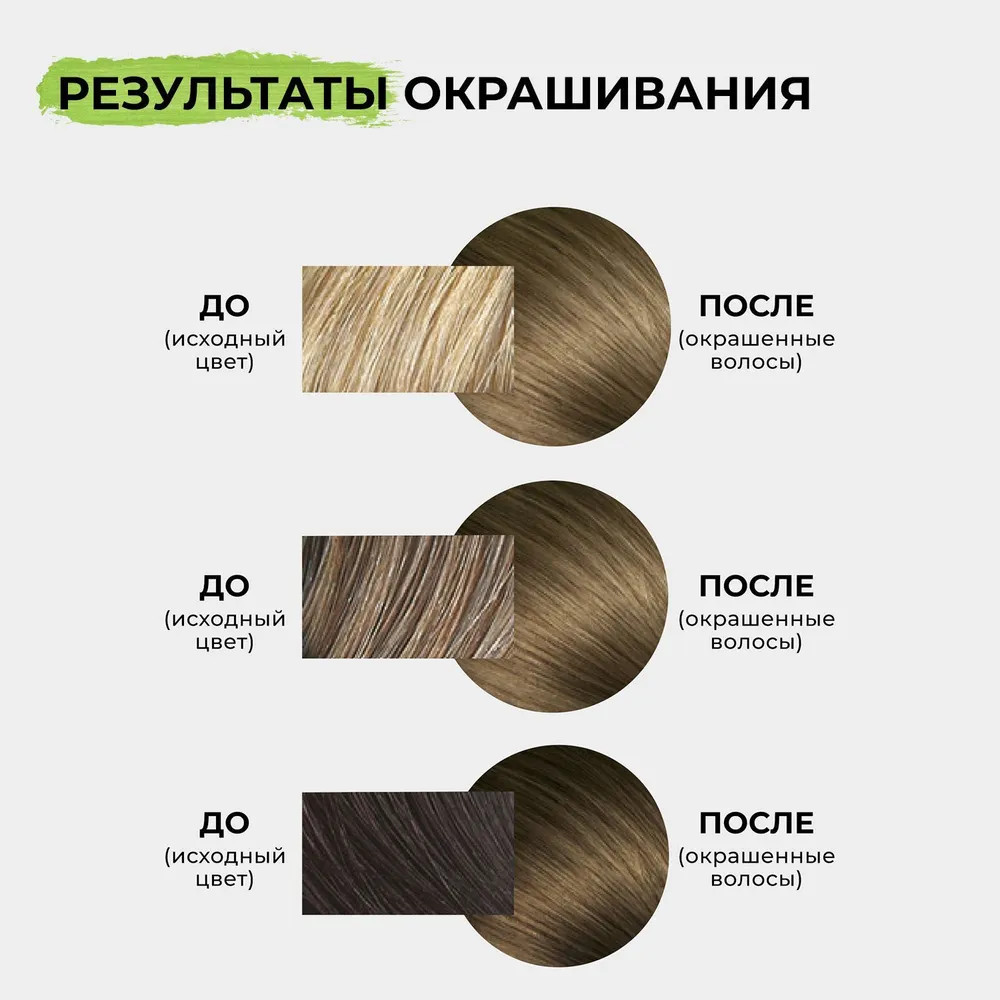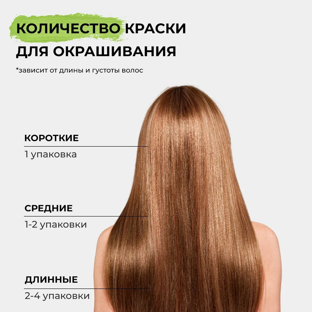 Неплохо выравнивает тон. Одной пачки хватает на короткие волосы. Для длинных волос лучше взять пару-тройку упаковок.