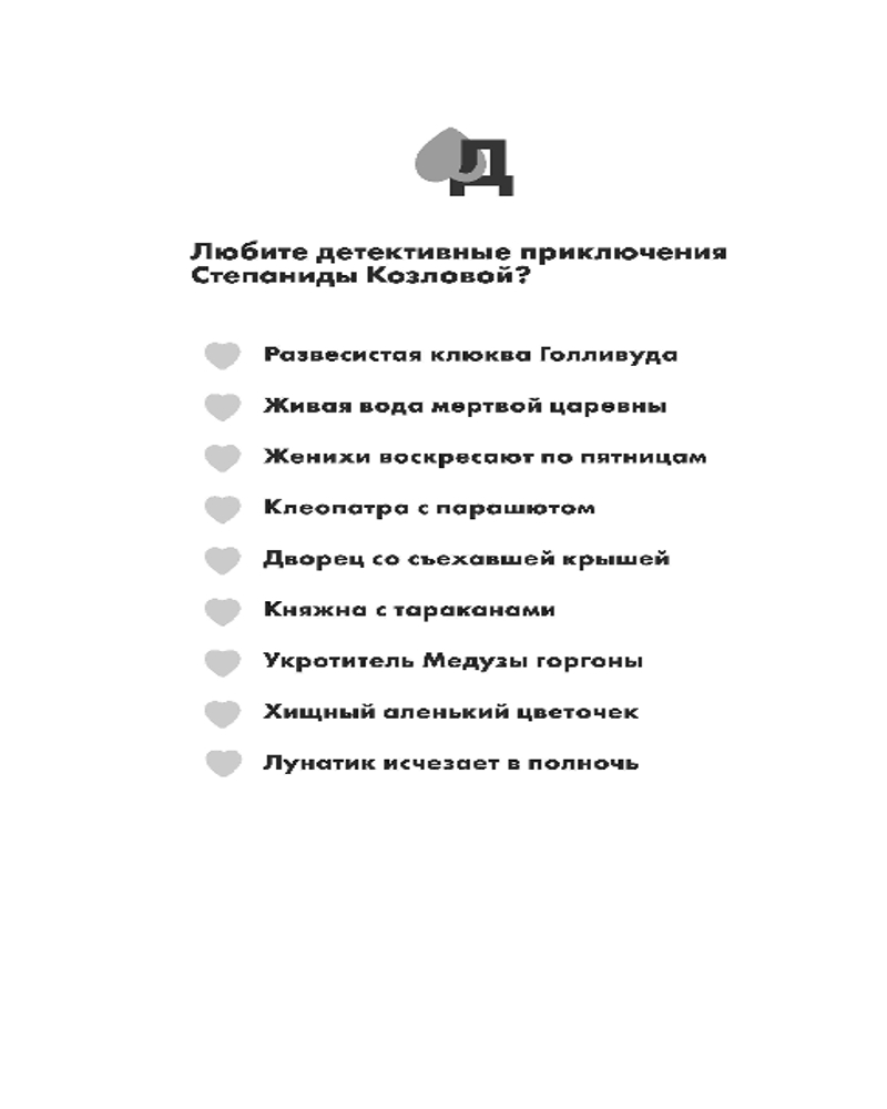 В данный момент этот товар отсутствует в продаже. Возможно, у нас найдется аналогичный или похожий товар здесь. Серия: Иронический детектив (обложка) Вряд ли стоит рассказывать кроту, как прекрасно загорать на солнце. Вот так и люди не всегда могут понять чужую боль. У подруги Степаниды Козловой Аси Болотовой в семье несчастья сыпятся одно за другим: сначала свекра разбивает инсульт, затем от пневмонии умирает сестра свекрови, а через полгода и их племянница. Очень печально, такое бывает в жизни. Но когда в больнице с тем же диагнозом оказывается и муж Аси Николай, та впадает в настоящую истерику. Женщина устраивает полную дезинфекцию всего дома и умоляет Степу помочь ей. Ведь тут явно дело нечисто! Разбираясь в причинах навалившихся трагедий, Козлова выходит на след некой Лолы, у которой была пикантная связь с Николаем.