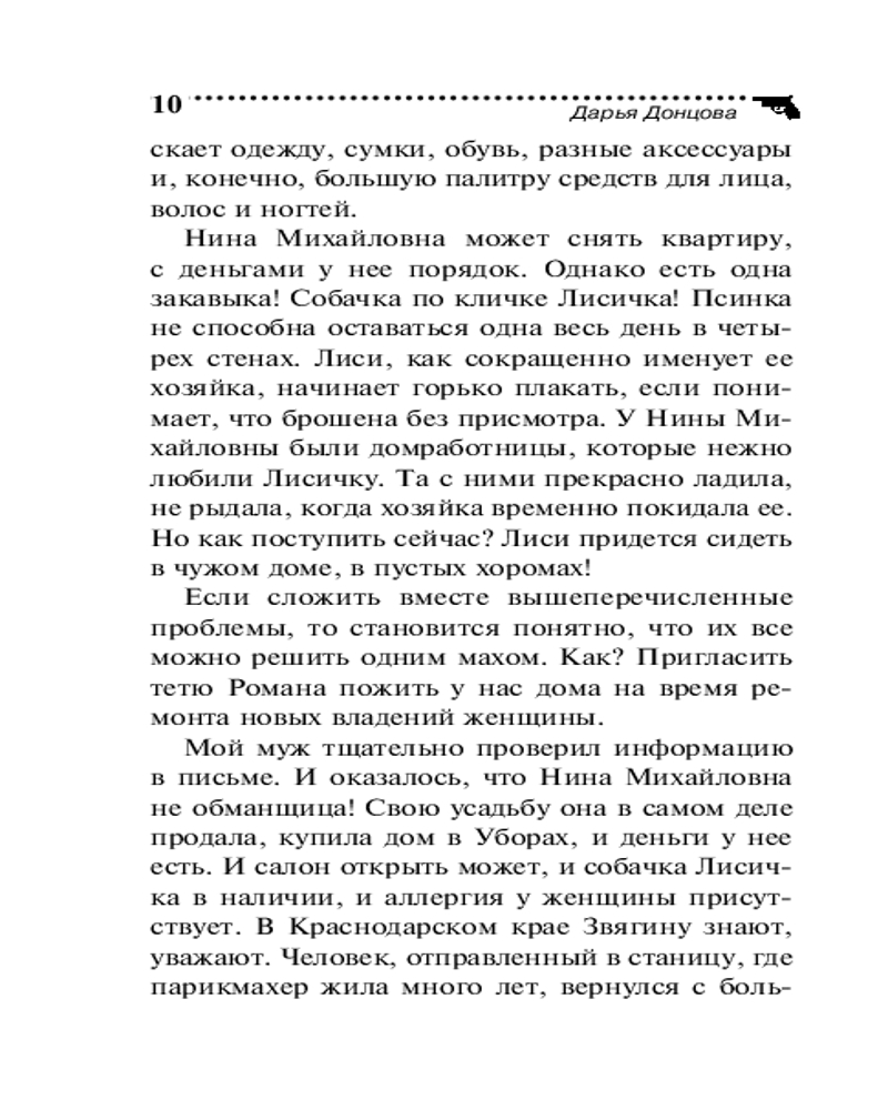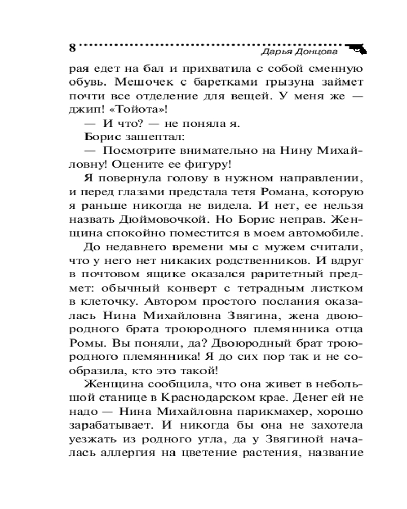 Дарья Аркадьевна Донцова (настоящее имя — Агриппина Аркадьевна Донцова) — российская писательница, член Союза писателей России, лауреат литературных премий. Родилась в Москве, в семье писателя Аркадия Васильева и режиссера Москонцерта Тамары Новацкой. После окончания факультета журналистики МГУ два года проработала переводчиком с французского в советском консульстве в Сирии. Затем — корреспондентом отдела информации и преподавателем немецкого и французского языков. В конце 1998 года... |