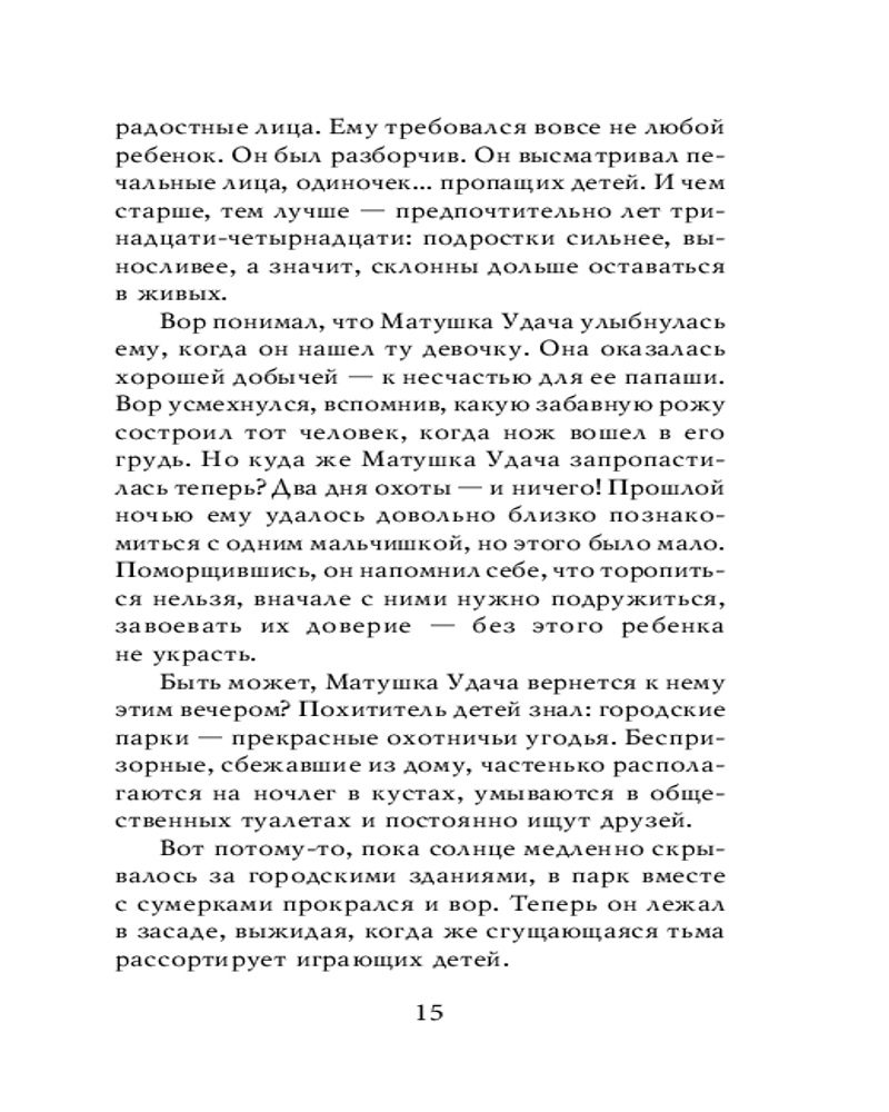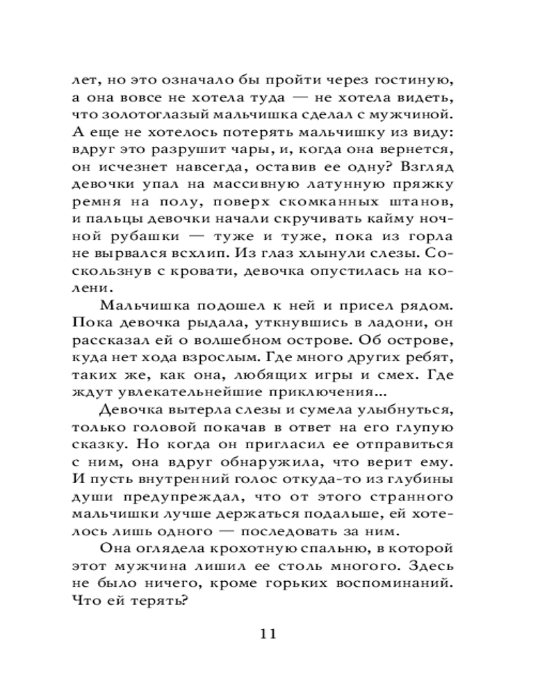 💳 Оплатить за товар можно при получении 🇰🇿 Есть бесплатная доставка по Казахстану от 1 дня 🎁 Копите бонусы с каждой покупки Серия: Мастера магического реализма (покет) Четырнадцатилетний Ник чудом не погиб в одном из бруклинских парков от рук наркоторговцев, но на помощь ему явился Питер. О, этот Питер! Он быстр, смел, крайне проказлив и, как все мальчишки, любит поиграть, хотя его игры нередко заканчиваются кровопролитием. Его глаза сияют золотом, стоит ему улыбнуться вам, и вы превращаетесь в его друга на всю жизнь. Он приходит к одиноким пропащим детям — сломленным, отчаявшимся, подвергающимся насилию — обещая взять их с собой в тайное место, где их ждут необычайные приключения, где живо волшебство, и где они никогда не станут взрослыми. Конечно, безумные россказни Питера о феях и чудовищах настораживают, но Ник соглашается. В конце концов, в Нью-Йорке для него больше нет безопасного места. Что ему терять? Однако в жизни всегда есть что терять... |