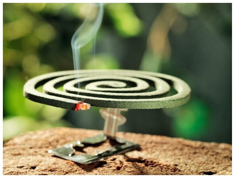 Способ применения: установите спираль от комаров на специальный держатель (входит в комплект), подожгите кончик. Спираль от комаров начнет действовать через 10-15 минут от начала горения. Одной спирали хватит на 7 часов без насекомых.