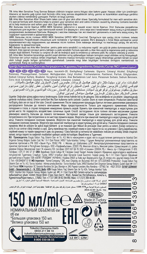 💳 Оплатить за товар можно при получении 🇰🇿 Есть бесплатная доставка по Казахстану от 1 дня 🎁 Копите бонусы с каждой покупки Серия: Sensitive Бальзам после бритья Arko Men для чувствительной кожи заботится о вашей коже после бритья. Специально разработанная формула для чувствительной мужской кожи. Формула с Алоэ Вера защищает чувствительную кожу и уменьшает риск раздражения, вызванного бритьем. А входящее в состав масло лаванды увлажняет и смягчает кожу. |