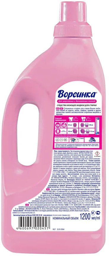 Ворсинка Средство жидкое для стирки шерстяных и деликатных тканей
