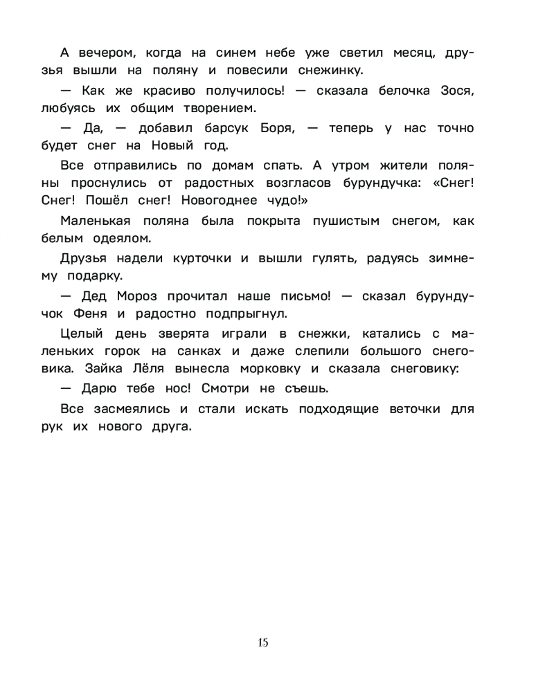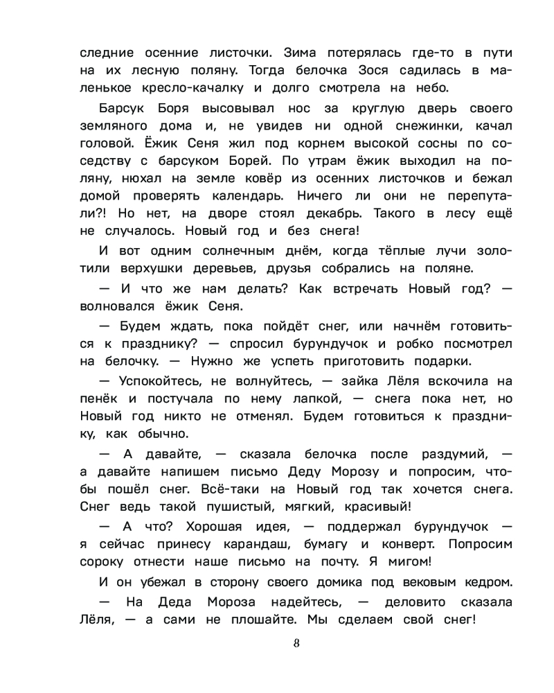 Однажды в лесу не было снега, а ведь зверята так его ждали и так надеялись, что у них будет поистине сказочный Новый год... Но что это? Неужели снег? Лес наполнился духом приближающегося праздника. Вот радость! Однако, дух важно не только почувствовать, но и не потерять его в предпраздничной суете, а в этом помогут настоящая дружба и, конечно, зимнее волшебство! |