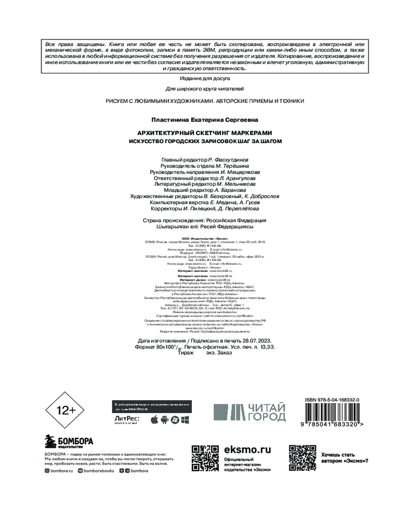 💳 Оплатить за товар можно при получении 🇰🇿 Есть бесплатная доставка по Казахстану от 1 дня 🎁 Копите бонусы с каждой покупки Серия: Рисуем с любимыми художниками. Авторские приемы и техники Вдохновляющее пособие по созданию городских зарисовок маркерами от профессионального архитектора! |