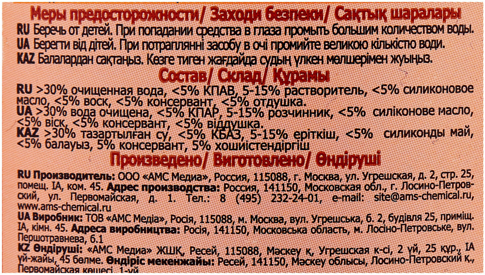 Полироль очень удобен в использовании: консистенция жидкая - можно обходиться без влажных тряпок. Освежает мебель и придаёт очень лёгкий блеск.