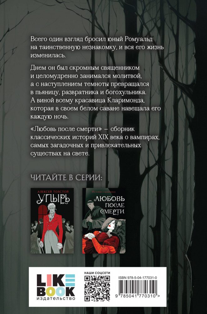 💳 Оплатить за товар можно при получении 🇰🇿 Есть бесплатная доставка по Казахстану от 1 дня 🎁 Копите бонусы с каждой покупки Серия: Young Adult. Сумеречная жажда. Классика «Любовь после смерти» — сборник готических историй XIX века о вампирах. Увлекательный сюжет, яркие характеры, приятный ужас и капелька отменного юмора. |