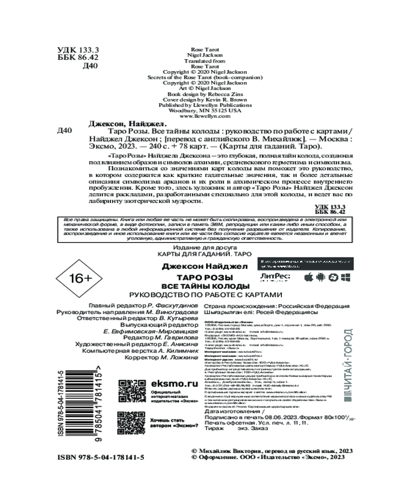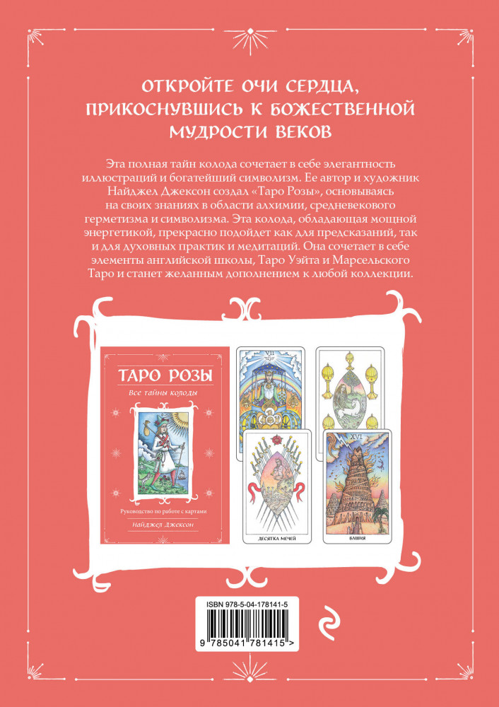 💳 Оплатить за товар можно при получении 🇰🇿 Есть бесплатная доставка по Казахстану от 1 дня 🎁 Копите бонусы с каждой покупки Серия: Карты для гаданий. Таро «Таро розы» Найджела Джексона — колода, созданная под влиянием образов и символов алхимии, средневекового герметизма и символизма. Она сочетает в себе элементы и традицию Таро Уэйта со средневековым очарованием Марсельского Таро. Работая с ней, вы исследуете куртуазные тайны рыцарства и любви, секреты каббалы и алхимии, а также духовную функцию символов Таро, которые являются вратами в пространство между материальной и духовной сферами. Это Таро с мощной энергетикой подойдет для предсказаний и духовных практик. |