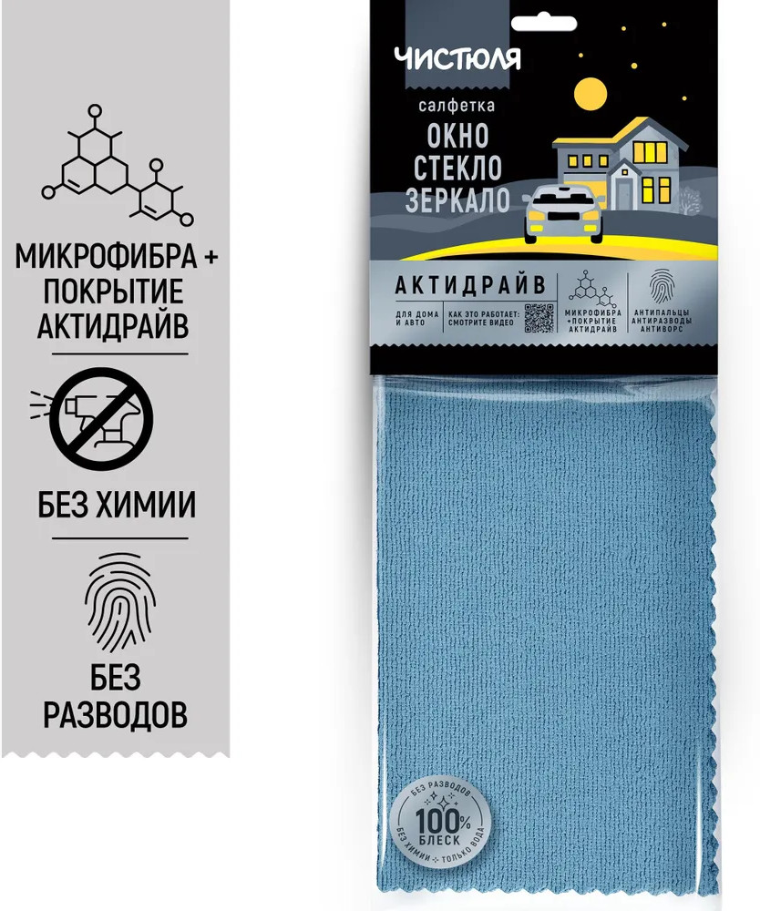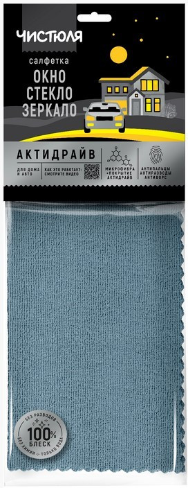 Чистюля Салфетка для мытья окон, стёкол и зеркал «Актидрайв»+52