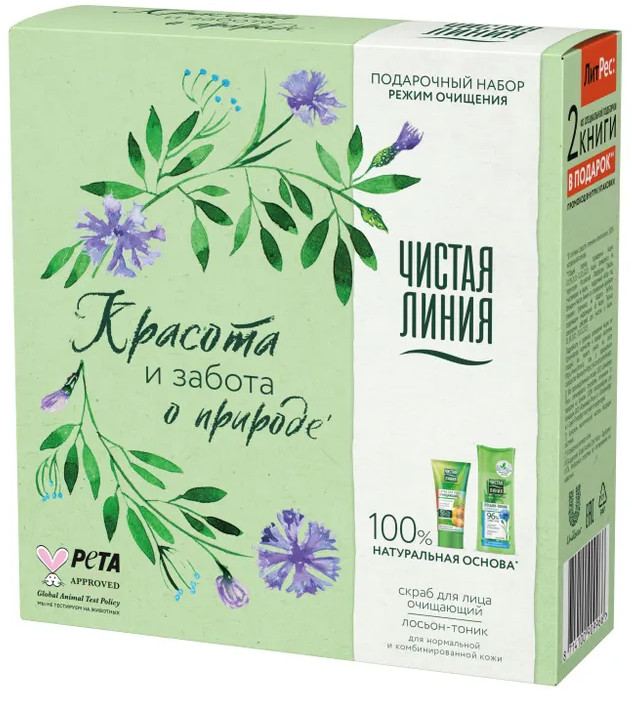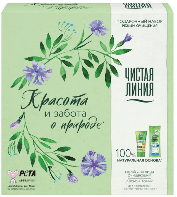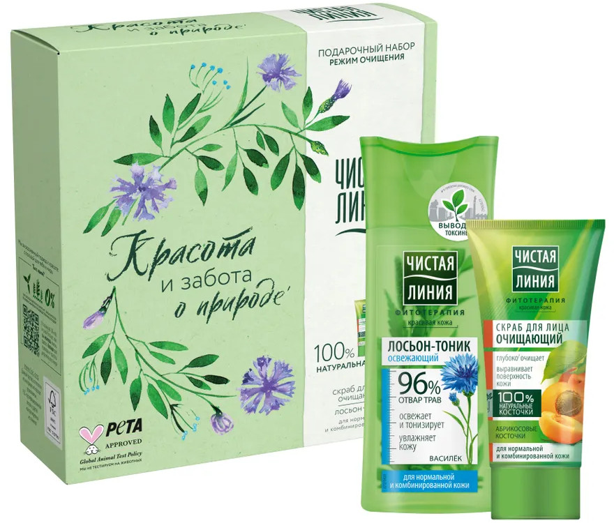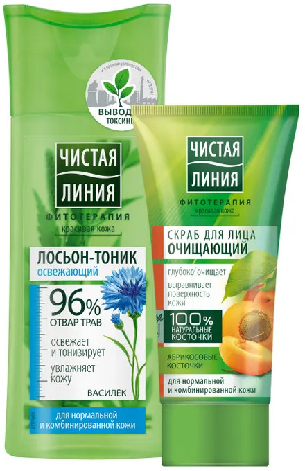 Лосьон-тоник: Aqua, PEG-40 Hydrogenated Castor Oil, Propylene Glycol, Glycerin, Panthenol, Centaurea Cyanus Flower Extract (экстракт василька), Urtica Dioica (Nettle) Leaf Powder (пудра листьев крапивы), Chamomilla Recutita (Matricaria) Flower Extract (экстракт ромашки), Achillea Millefolium Extract (экстракт тысячелистника), Hypericum Perforatum Flower/Leaf/Stem Extract (экстракт зверобоя), Chelidonium Majus Extract (экстракт чистотела), Aloe Barbadensis Leaf Juice (сок алоэ), Citric Acid, Disodium EDTA, DMDM Hydantoin, Parfum, Phenoxyethanol, Potassium Sorbate, Sodium Benzoate, Sodium Hydroxide, Sodium Methylparaben, Sodium Sulfite, Hexyl Cinnamal, Limonene, Linalool, CI 19140, CI 42090.
