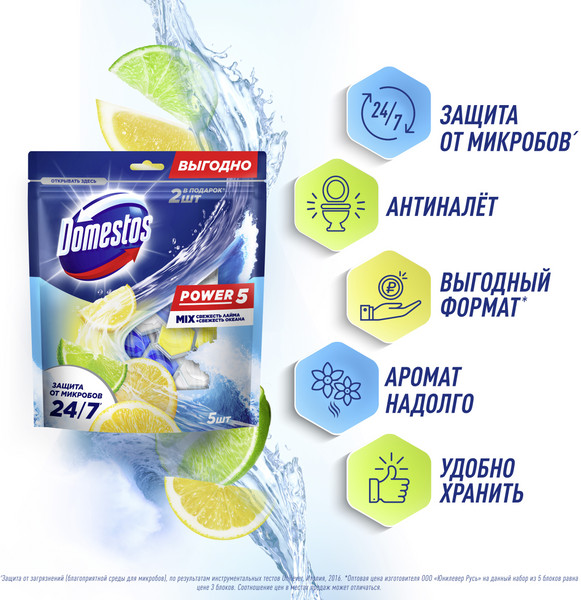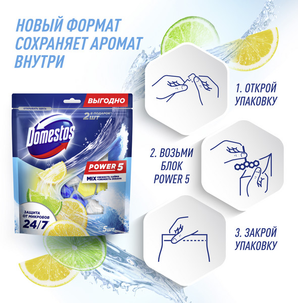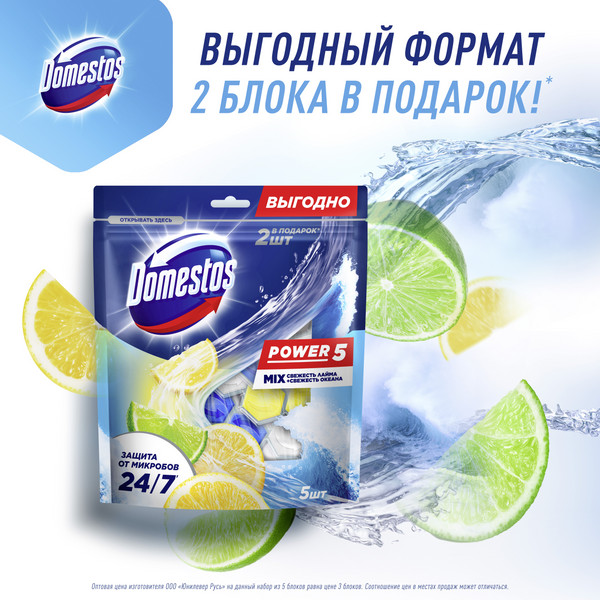 Domestos Блок для очищения унитаза «Свежесть лайма и свежесть океана»