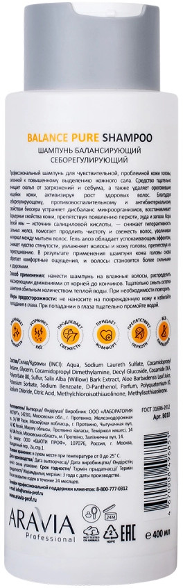 Aravia Шампунь для волос балансирующий себорегулирующий «Balance Pure Shampoo»-20% +45 эффективность жирная голова перхоть зуд