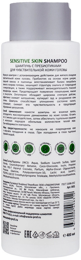 Aravia Шампунь для чувствительной кожи головы с пребиотиками «Sensitive Skin Shampoo»В данный момент этот товар отсутствует в продаже. Возможно, у нас найдется аналогичный или похожий товар здесь. Формула шампуня с успокаивающим действием для мягкого очищения чувствительной кожи головы. Шампунь способствует улучшению состояния скальпа, успокаивает, снижает его чувствительность и предотвращает образование шелушения. |