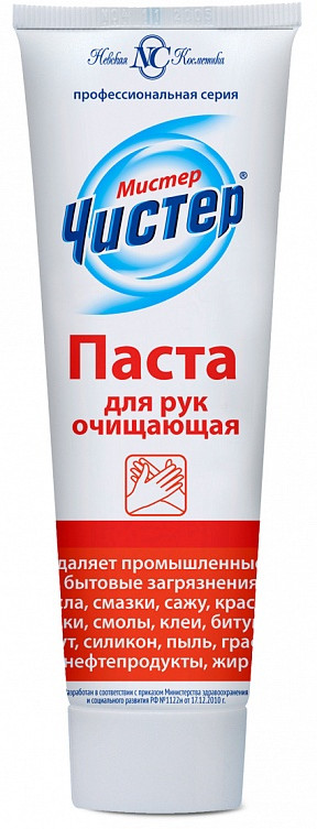 Серия: Профессиональная серия Паста очищающая разработана в рамках серии продуктов «Мистер Чистер» для ухода за кожей рук. Паста для удаления с поверхности кожи промышленных и бытовых загрязнений, таких как масла, смазки, сажа, краска, смолы и так далее.