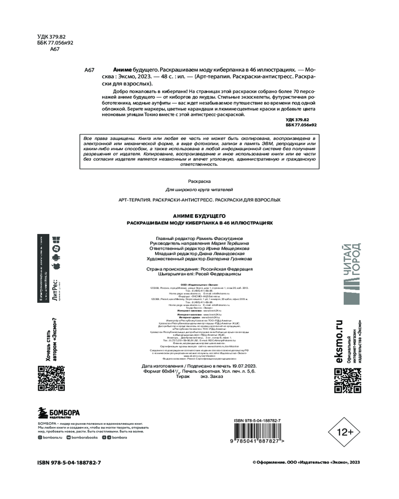 💳 Оплатить за товар можно при получении 🇰🇿 Есть бесплатная доставка по Казахстану от 1 дня 🎁 Копите бонусы с каждой покупки Серия: Арт-терапия. Раскраски-антистресс. Раскраски для взрослых Окунитесь в мир киберпанка и аниме вместе с этой неоновой антистресс-раскраской. Вместе с ней вы отправитесь в незабываемое путешествие по футуристичной Японии: повстречаетесь с людьми в экзоскелетах, пройдетесь по обновленному модному кварталу Харадзюку и даже попадете к устрашающим якудзам будущего. Берите все, что есть под рукой — от обычных маркеров до люминесцентных красок, — и добавьте красок новой аниме-вселенной вместе с ее многочисленными обитателями! |