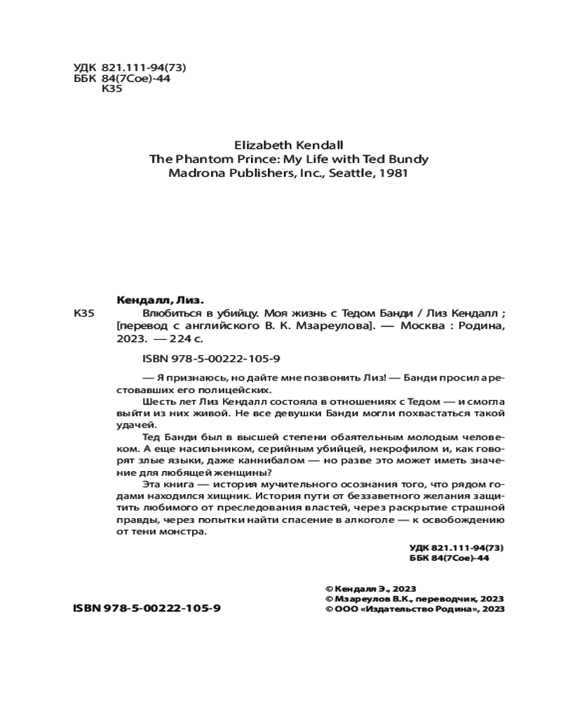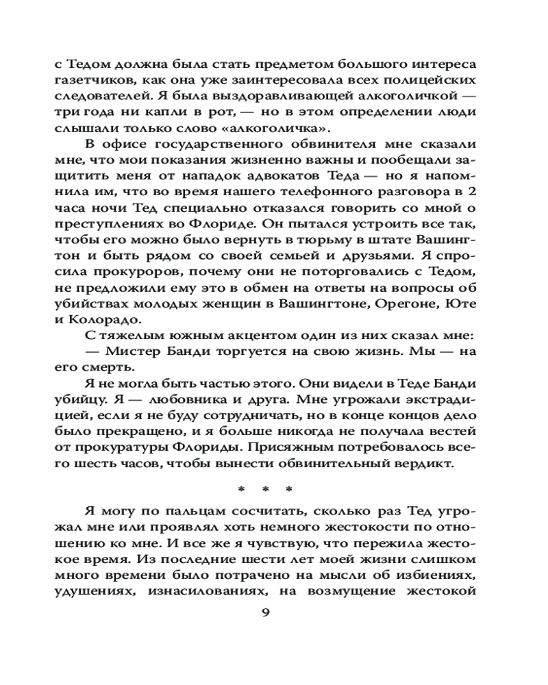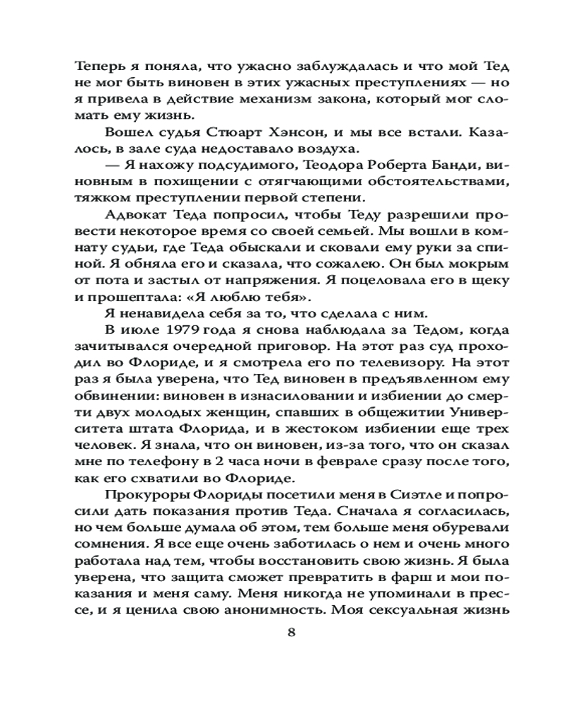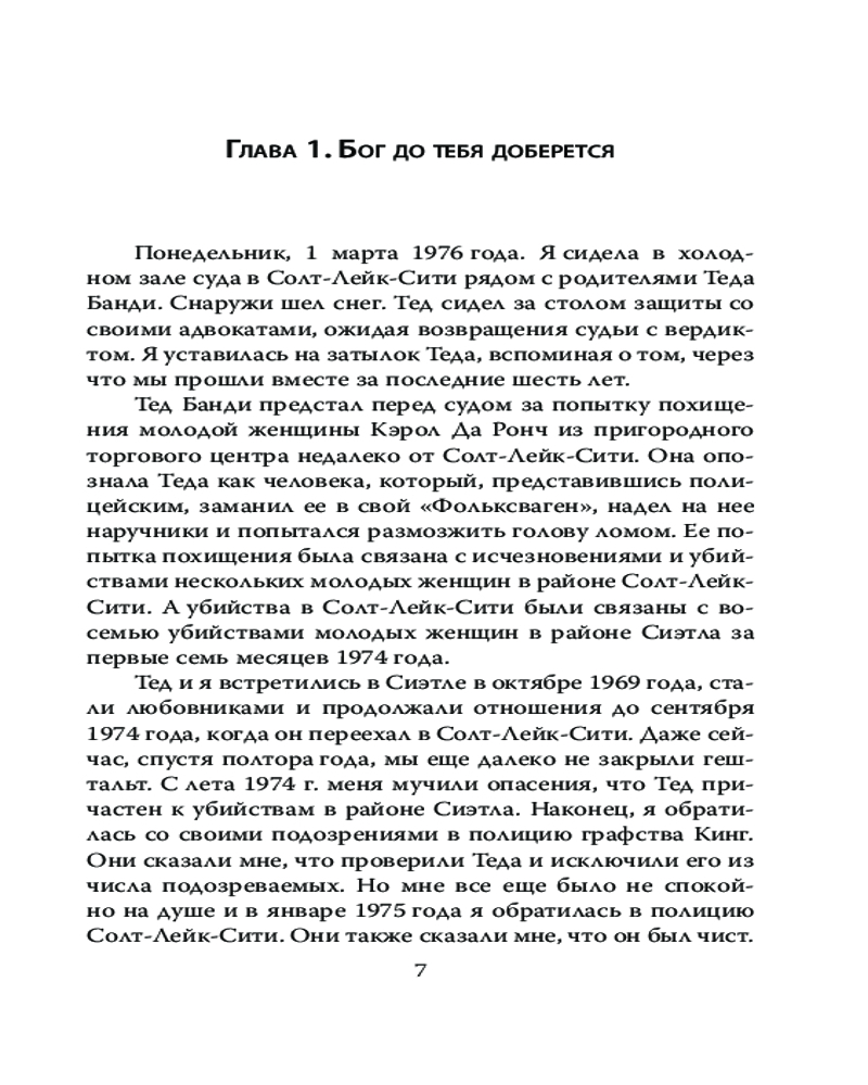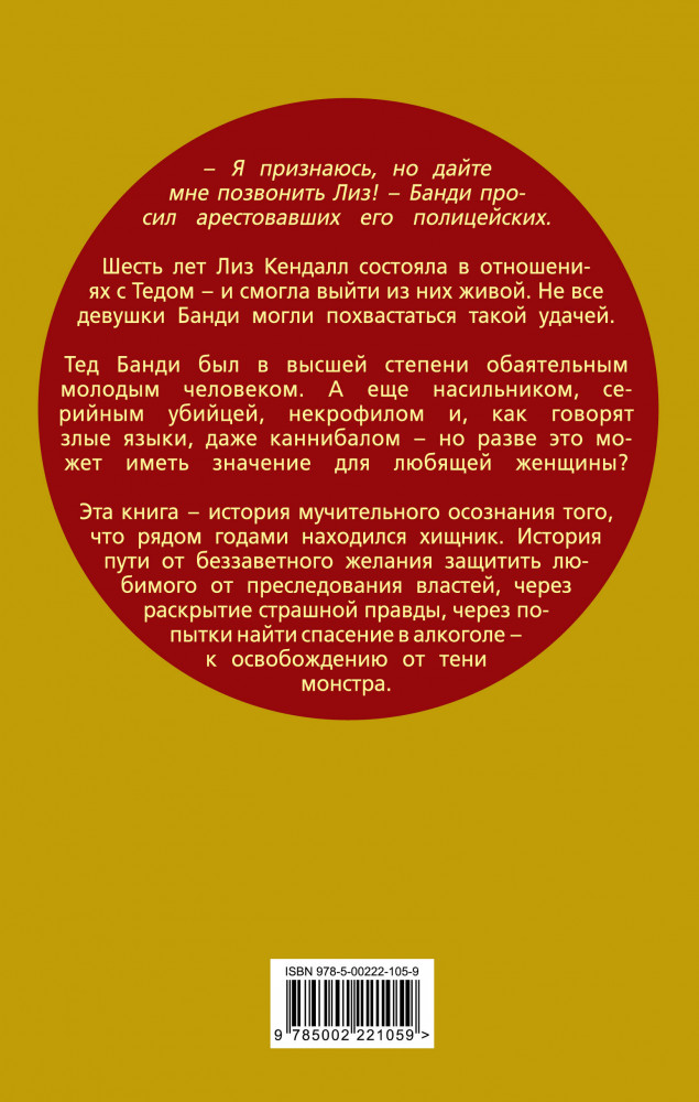 💳 Оплатить за товар можно при получении 🇰🇿 Есть бесплатная доставка по Казахстану от 1 дня 🎁 Копите бонусы с каждой покупки Серия: Наедине с убийцей — Я признаюсь, но дайте мне позвонить Лиз! — Банди просил арестовавших его полицейских. Шесть лет Лиз Кендалл состояла в отношениях с Тедом — и смогла выйти из них живой. Не все девушки Банди могли похвастаться такой удачей. Тед Банди был в высшей степени обаятельным молодым человеком. А еще насильником, серийным убийцей, некрофилом и, как говорят злые языки, даже каннибалом, — но разве это может иметь значение для любящей женщины? |