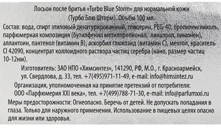 Perfect Men Лосьон после бритья «Turbo Blue Storm»-20% +15