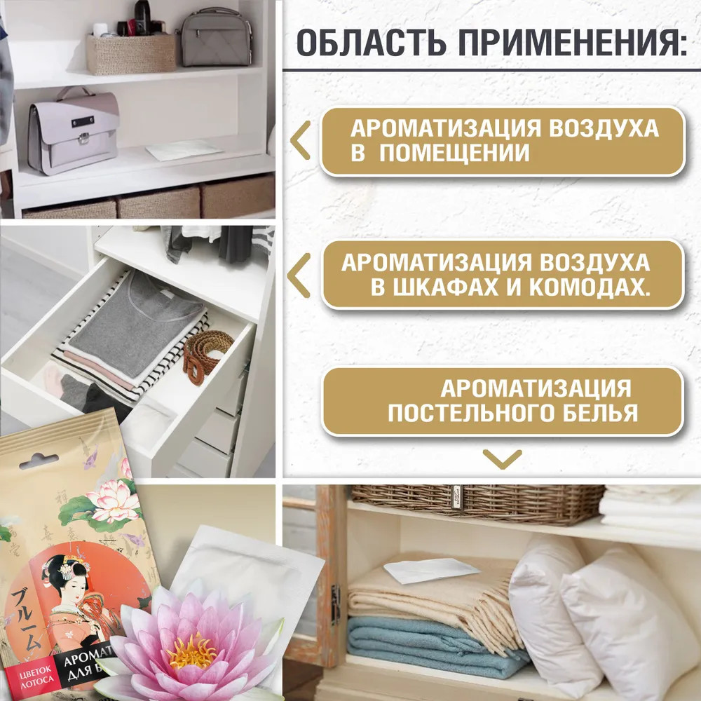 Положила в шкаф с одеждой, аромат по всей комнате. Очень понравилось, буду еще заказывать из этой серии