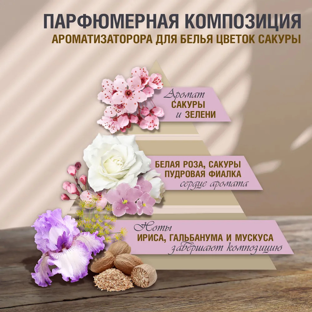 Очень приятный, тонкий, нежный аромат, но к сожалению совсем не долговечный. Когда бывают скидки, покупаю, пусть не надолго, но ароматизирует белье хорошо.