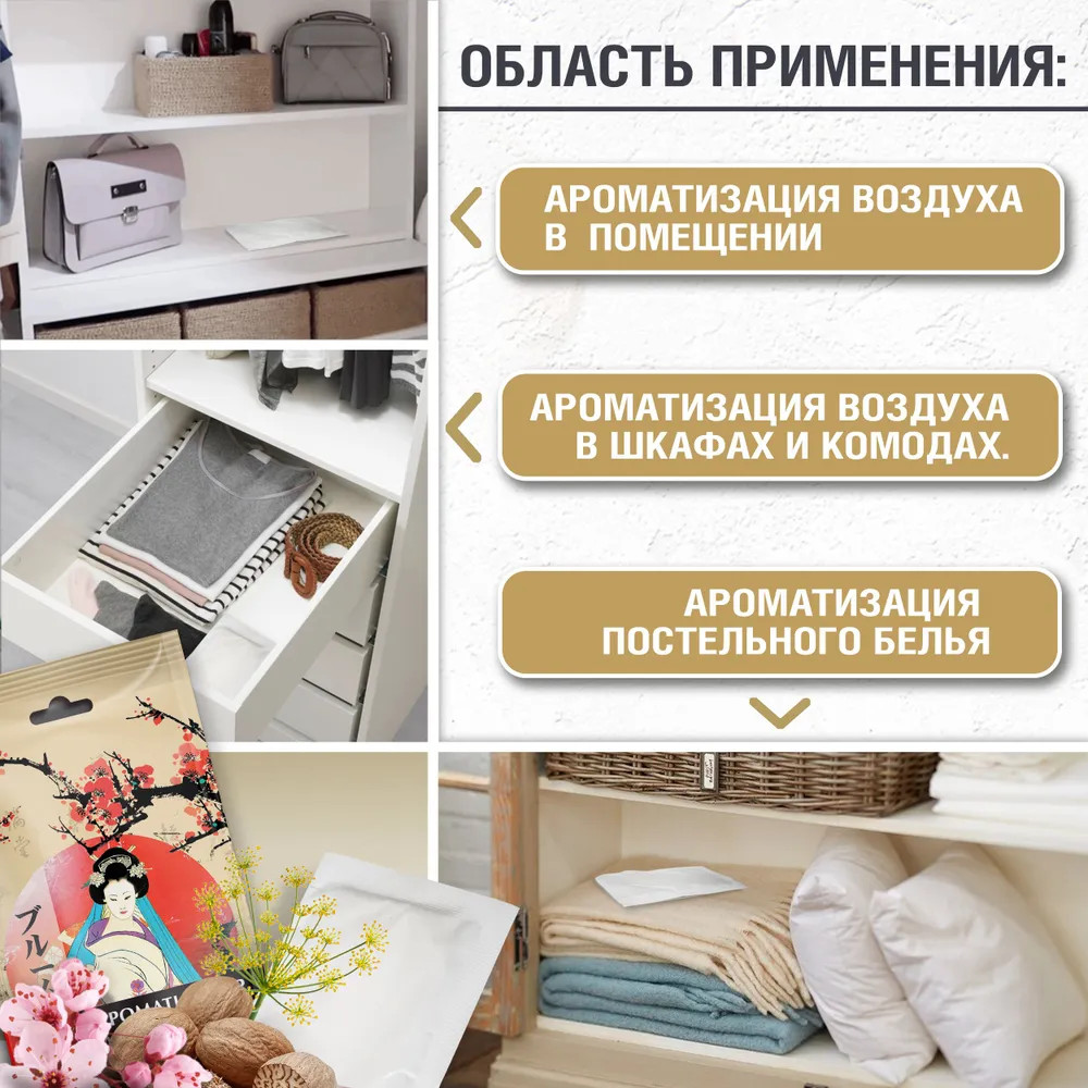 Положила в шкаф с одеждой, аромат по всей комнате. Очень понравилось, буду еще заказывать из этой серии