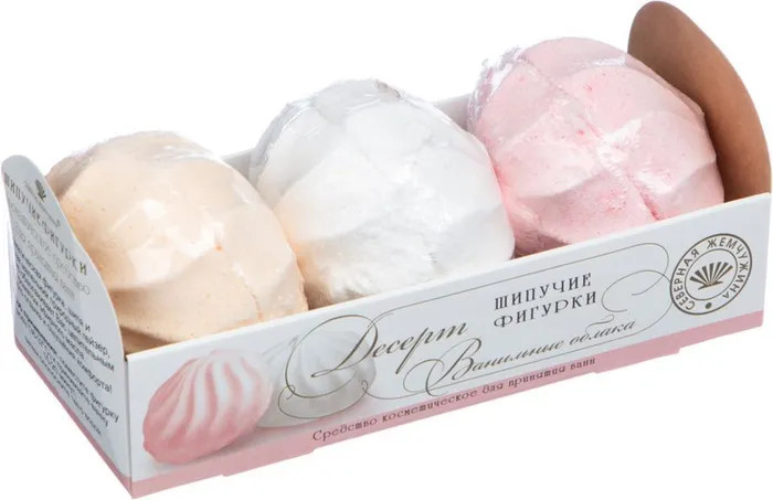 Северная жемчужина Набор бомбочек для ванны «Десерт ванильные облака»В данный момент этот товар отсутствует в продаже. Возможно, у нас найдется аналогичный или похожий товар здесь. Набор бомбочек для ванны «Десерт ванильные облака» — это заключительная изящная нотка в процедуре принятия ванн — десерт для ванны. Шипучая фигурка, шипя и пенясь, наполнит вас целительным ароматом эфирного масла и мгновенно заворожит , прибавит настроения и добавит свою «изюминку» при принятии ванны. |
