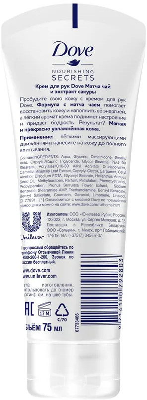 Dove Крем для рук «Чай матча и экстракт сакуры»