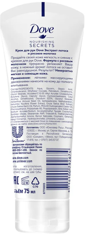 Dove Крем для рук «Экстракт лотоса и рисовое молочко»