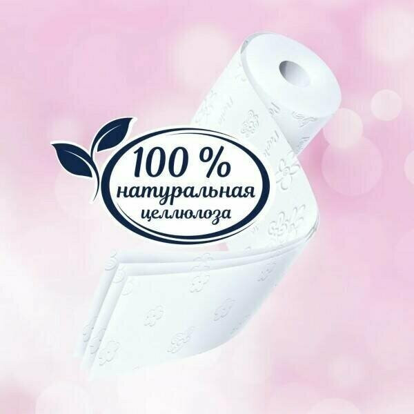 Из достоинств приятный, нежный аромат, большая упаковка, мягкость. Относительно невысокая цена, за такой объем. Рулоны бумаги рыхлые, не плотные, быстро заканчиваются.