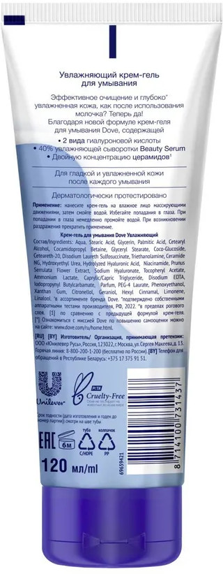 Dove Крем-гель для умывания «Увлажняющий»-20% +27