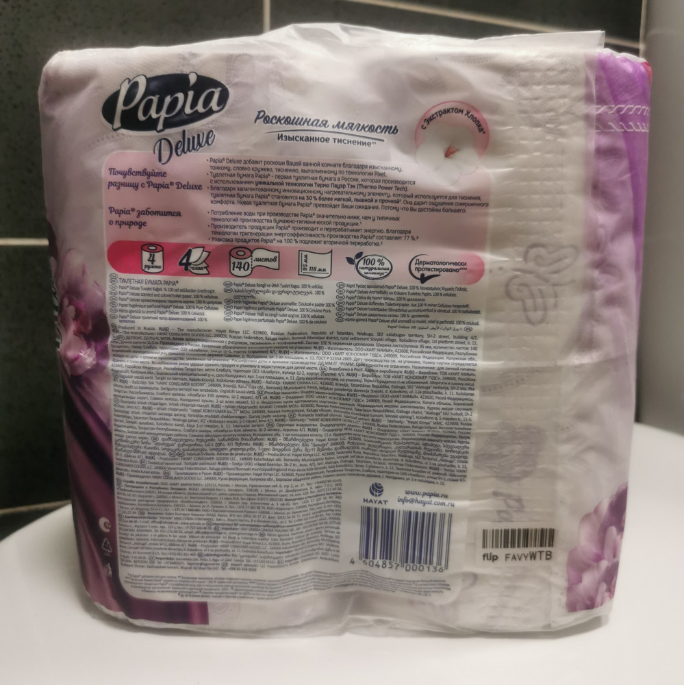 Давно берём бумагу этой фирмы. Качество очень хорошее. Толщина в 4 слоя комфортная. Приятный и нежный аромат. Доставка быстрая. Упакована была в эко бумагу. Пришло все в целости. Благодарю за качественный товар и быструю доставку! 🙏🏼🥰