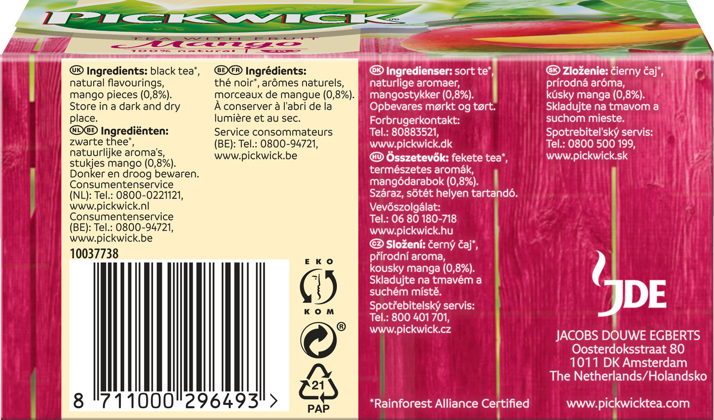 Pickwick Чай чёрный «Mango»В данный момент этот товар отсутствует в продаже. Возможно, у нас найдется аналогичный или похожий товар здесь. Сладкая смесь черного чая с манго, одним из самых популярных фруктов в мире. Наслаждайтесь восхитительным вкусом манго! Черный чай является основой наших фруктовых чаев и имеет пряный вкус. Манго придает чаю сладкий вкус. |