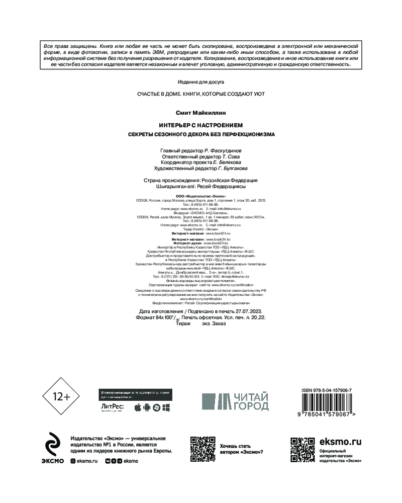 В данный момент этот товар отсутствует в продаже. Возможно, у нас найдется аналогичный или похожий товар здесь. Серия: Счастье в доме. Книги, которые создают уют Дом — это не просто крыша над головой, под которую мы возвращаемся с работы. Это место отдыха, вдохновения и общения с близкими. Как сделать так, чтобы дом стал уютным и родным в любое время года? В этой книге известный декоратор Майкиллин Смит, блогер @thenester с аудиторией более 200 тысяч подписчиков, делится своей методикой создания сезонного настроения дома.