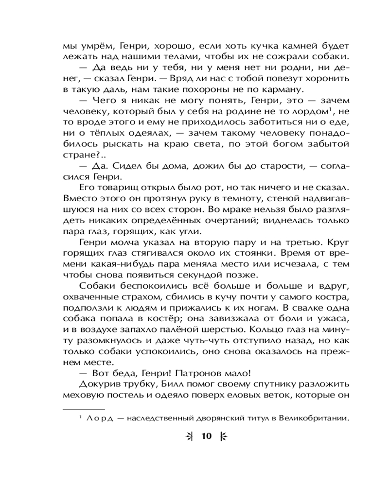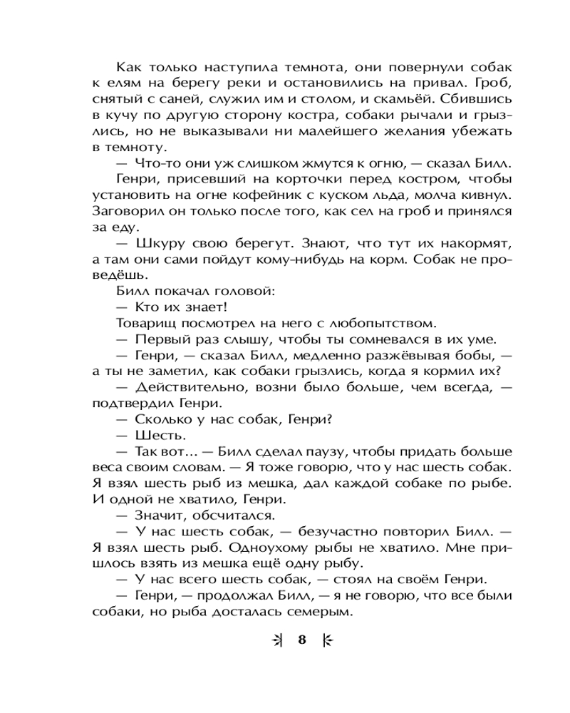 Белый Клык пройдёт весь путь от севера к югу и испытает обе грани человеческой природы, сохранив в своём жёстком характере способность на тёплые взаимоотношения. Все книги серии имеют подарочное оформление: твёрдый переплёт с вырубкой и тиснением фольгой, белая бумага и чёткий удобочитаемый шрифт. |