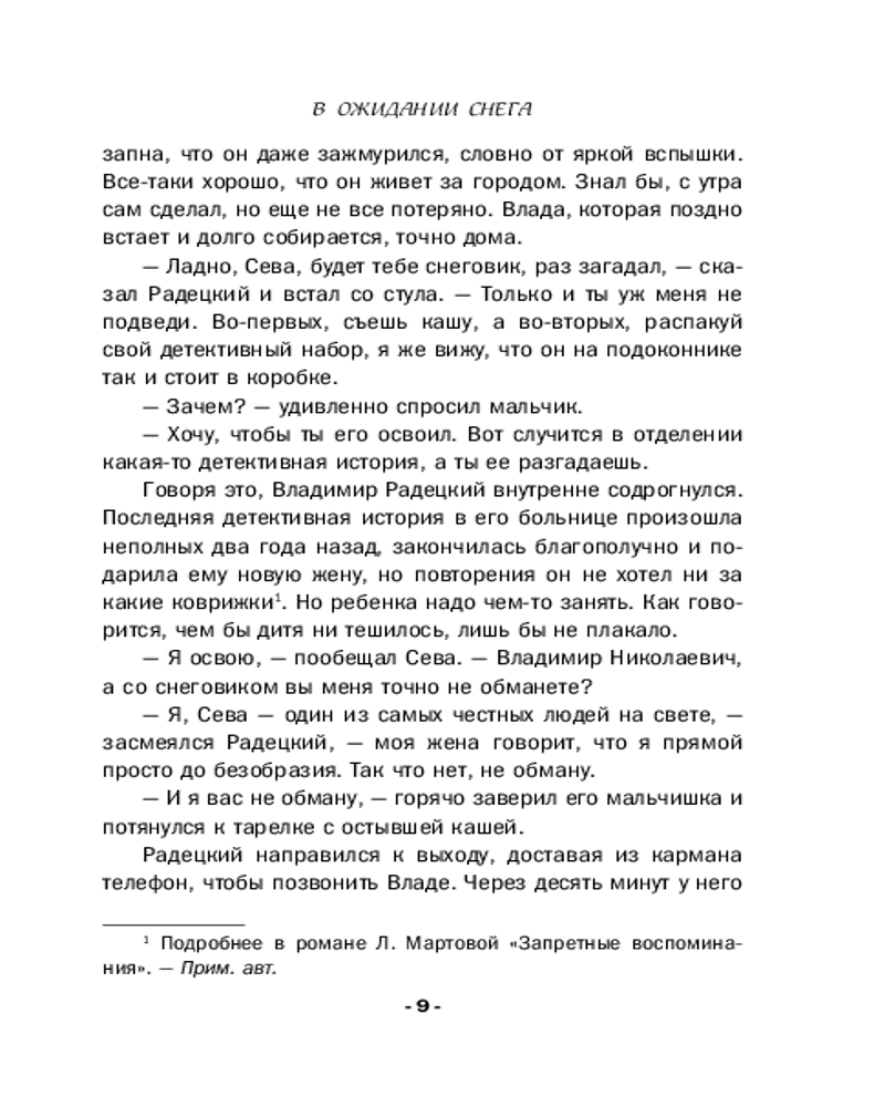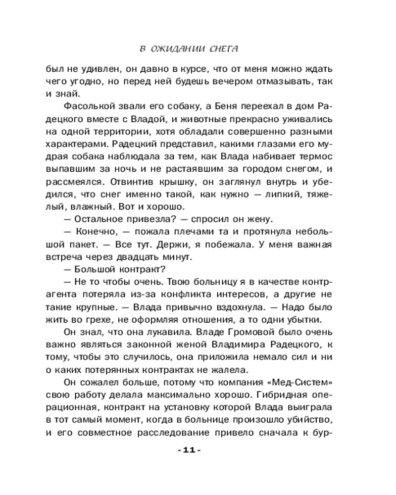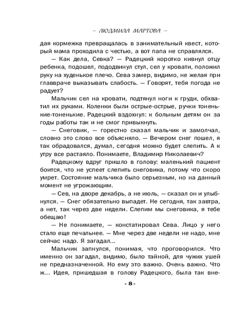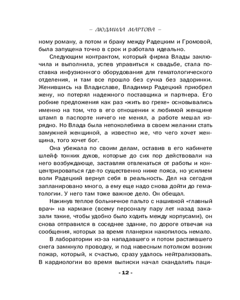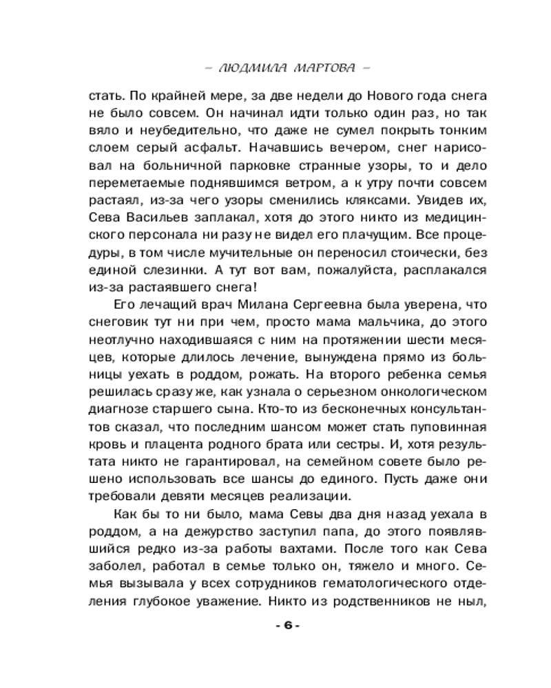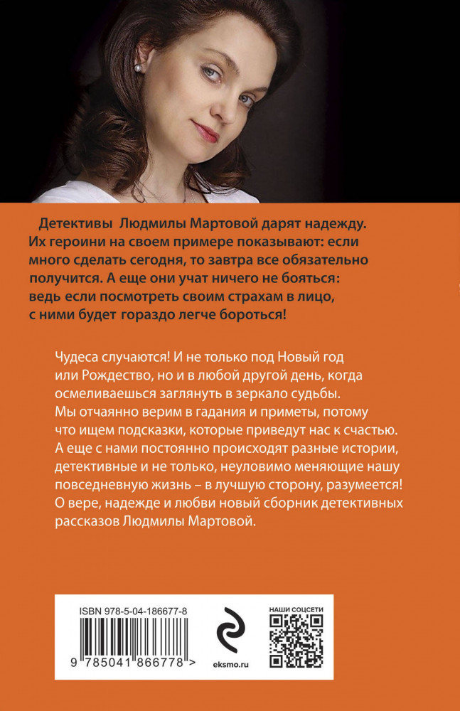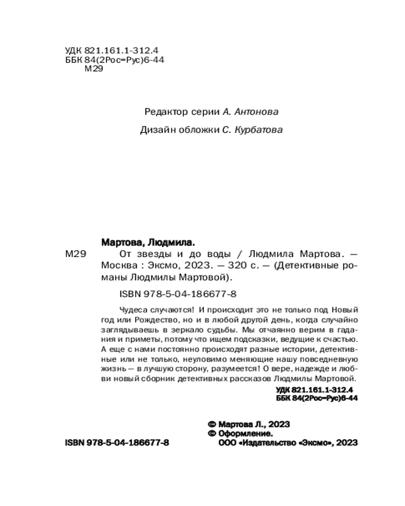 От звезды и до водыВ данный момент этот товар отсутствует в продаже. Возможно, у нас найдется аналогичный или похожий товар здесь. Серия: Детективные романы Людмилы Мартовой (обложка) Чудеса случаются! И происходит это не только под Новый год или Рождество, но и в любой другой день, когда случайно заглядываешь в зеркало судьбы. Мы отчаянно верим в гадания и приметы, потому что ищем подсказки, ведущие к счастью. А еще с нами постоянно происходят разные истории, детективные или не только, неуловимо меняющие нашу повседневную жизнь — в лучшую сторону, разумеется! О вере, надежде и любви новый сборник детективных рассказов Людмилы Мартовой. |