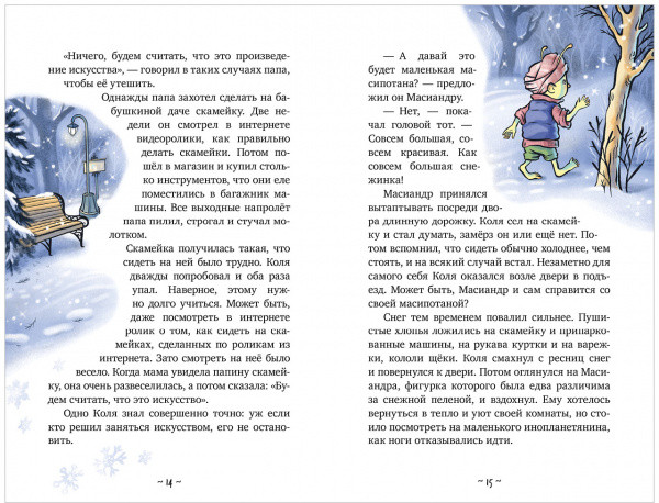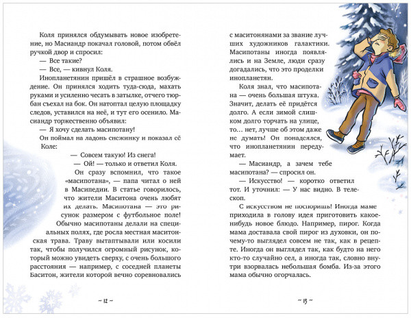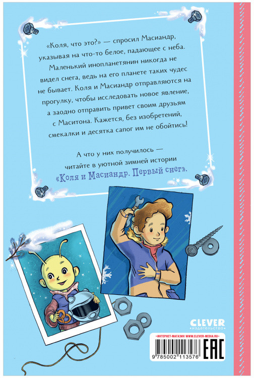 Серия: Коля и Масиандр «Коля и Масиандр. Первый снег» — это история про необычную дружбу мальчика Коли и инопланетянина Масиандра. Вместе они узнают, что зиму можно любить — если рядом кто-то, с кем всегда тепло! |