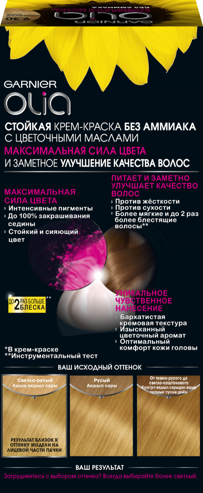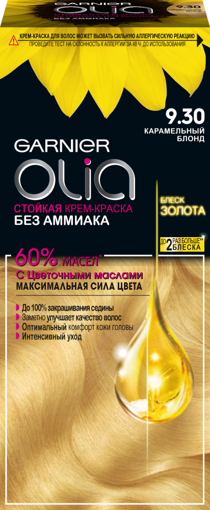 Garnier Стойкая крем-краска для волос «Olia» с цветочными маслами, без аммиака, оттенок 9.30 Карамельный блонд