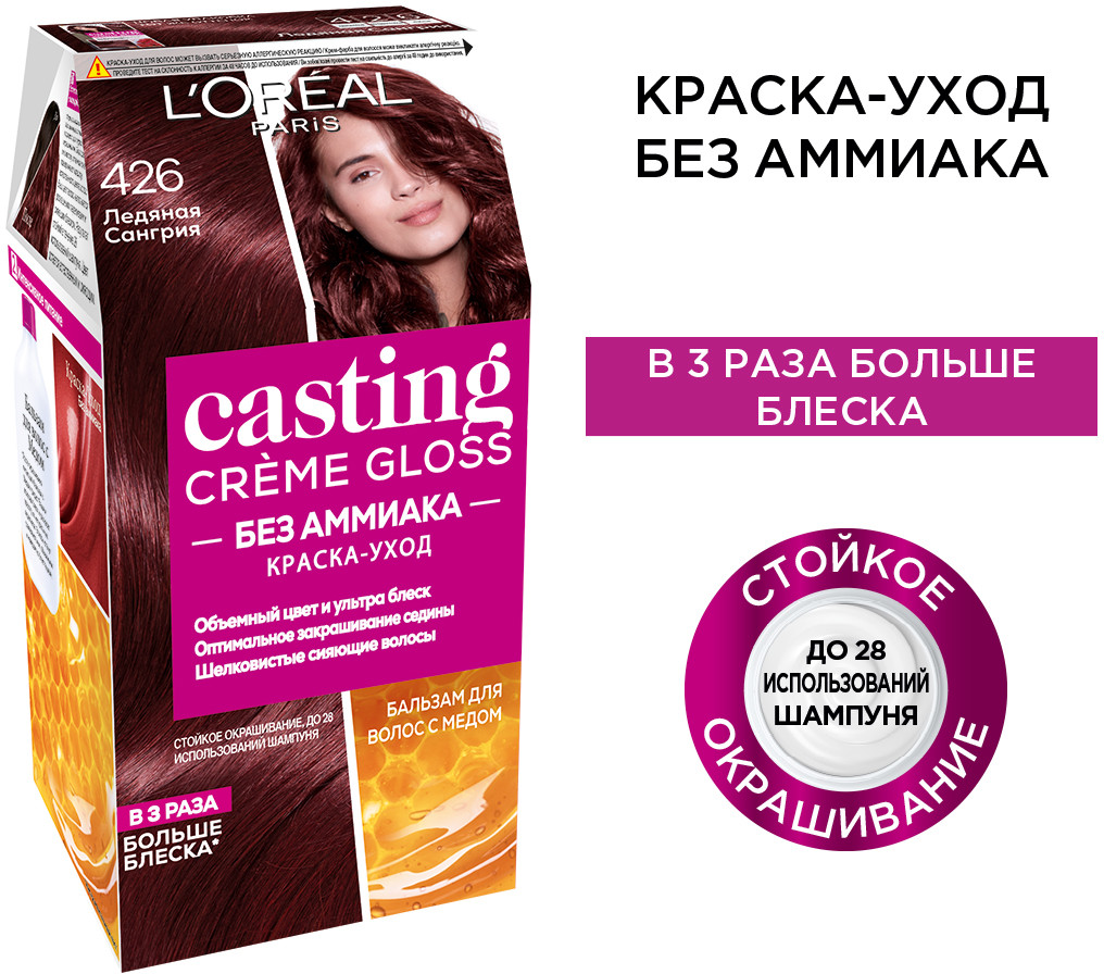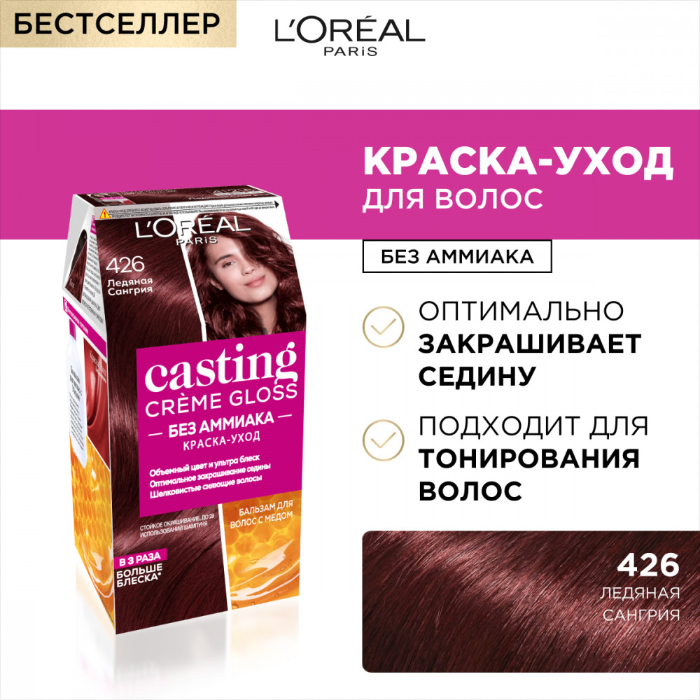 L'Oreal Paris Краска-уход для волос без аммиака, оттенок 426 Ледяная сангрия